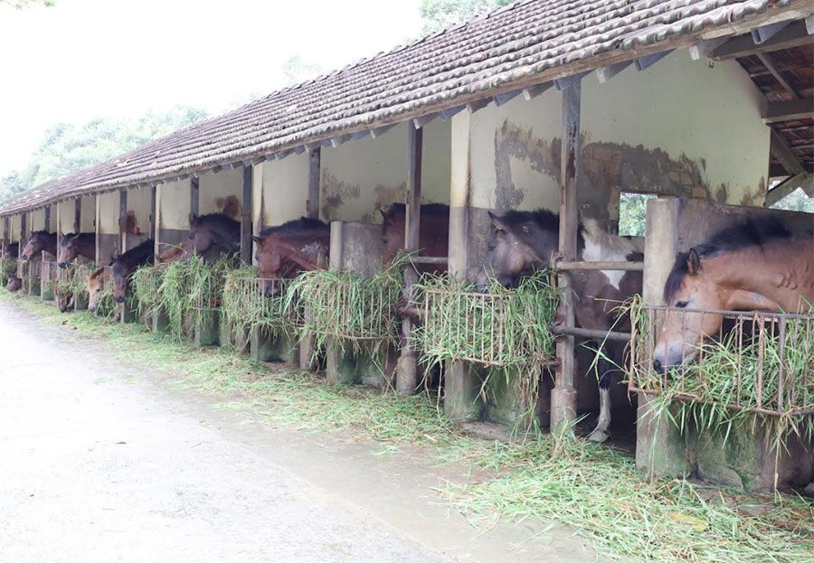 Khẩu phần ăn của mỗi chú ngựa cũng được tính toán khoa học bảo đảm đủ từ 18-22 kg cỏ tươi mỗi ngày, kết hợp 2,5-3,0 kg thức ăn tinh, được cung cấp đúng giờ, đúng định lượng và đúng chất.