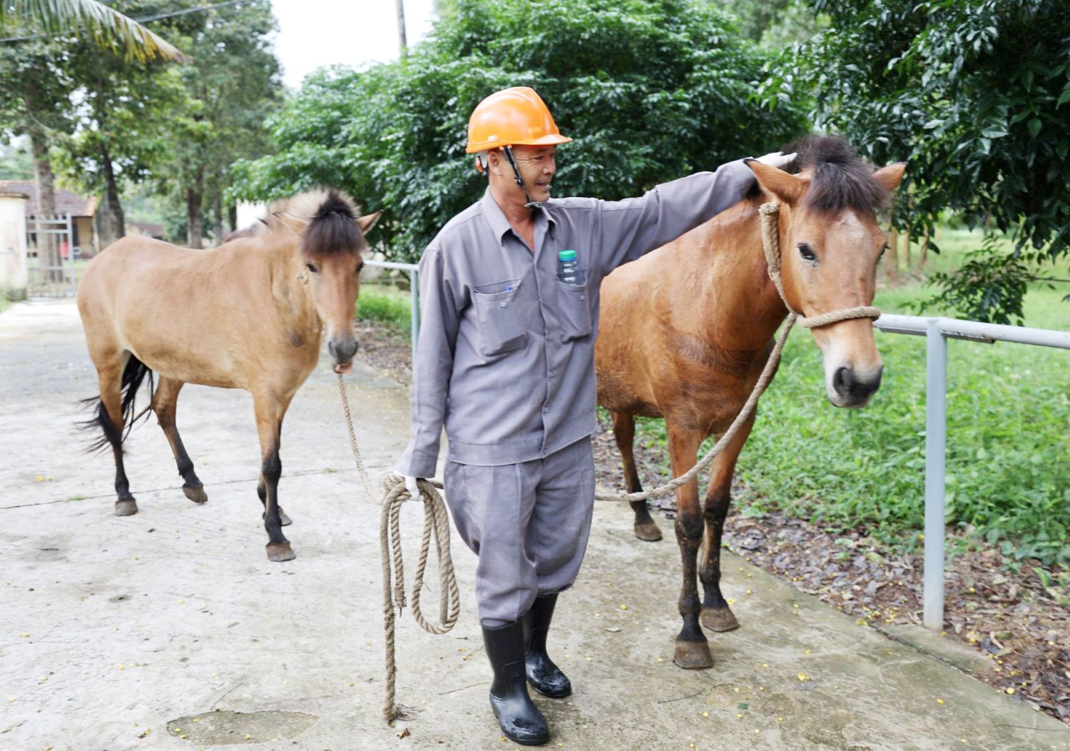 Ông Nguyễn Long Hồ - nhân viên Trại chăn nuôi Suối Dầu bên những chú ngựa.