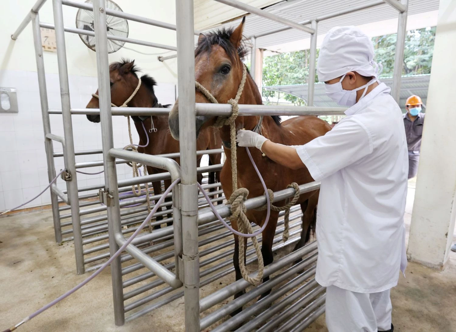 Không dừng lại ở chăm sóc thường nhật, đội ngũ bác sĩ thú y và cán bộ kỹ thuật còn trực tiếp theo dõi sức khỏe từng chú ngựa, thực hiện quy trình gây miễn dịch khoa học, chính xác, bảo đảm ngựa đạt trạng thái sinh lý tốt nhất trước khi lấy máu. Mỗi lần gây miễn dịch, lấy máu là sự kết hợp nhuần nhuyễn giữa chuyên môn, kinh nghiệm và tinh thần trách nhiệm, với mục tiêu cao nhất là thu được những giọt máu chất lượng, đồng thời bảo đảm an toàn cho đàn ngựa.