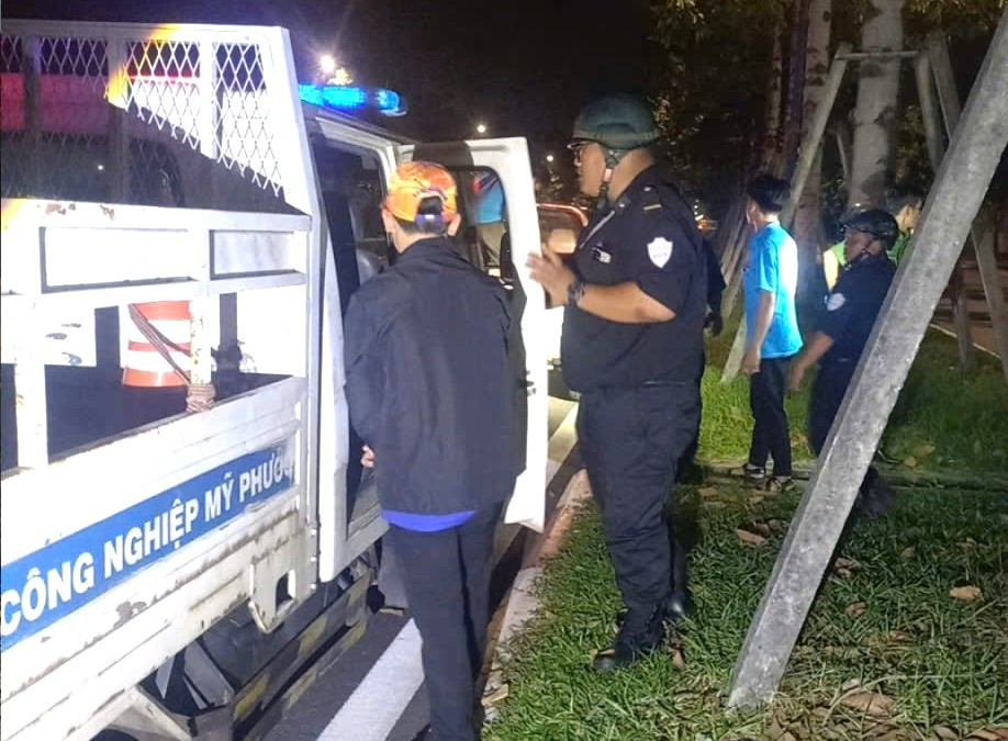 Tối 29/10, trong lúc tuần tra trên tuyến đường XE1 - DE4 (phường Thới Hòa), Đội Bảo vệ Xí nghiệp phát triển công nghiệp và đô thị Mỹ Phước phát hiện 1 nhóm thanh niên tụ tập, có dấu hiệu khả nghi nên tiến hành kiểm tra. Khi thấy lực lượng, nhóm người bỏ chạy.