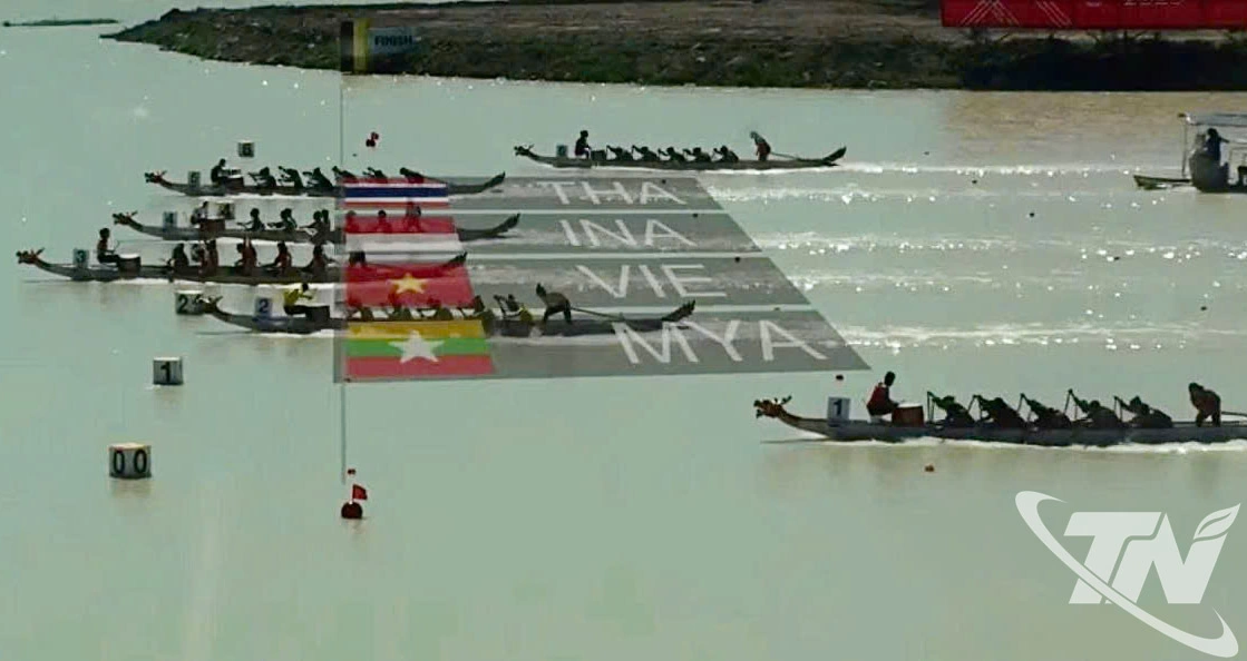 Giây phút về đích của Đội tuyển đua thuyền nữ Việt Nam (trong đó có các VĐV Thái Nguyên) tại SEA Games 33.