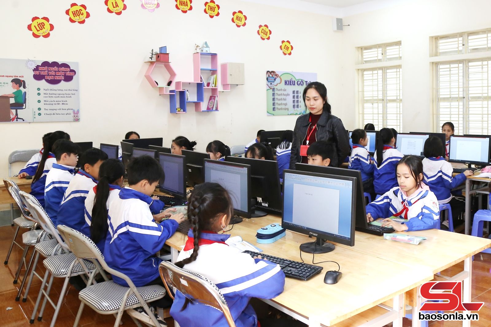 Giờ Tin học của cô và trò Trường Tiểu học Kim Đồng.