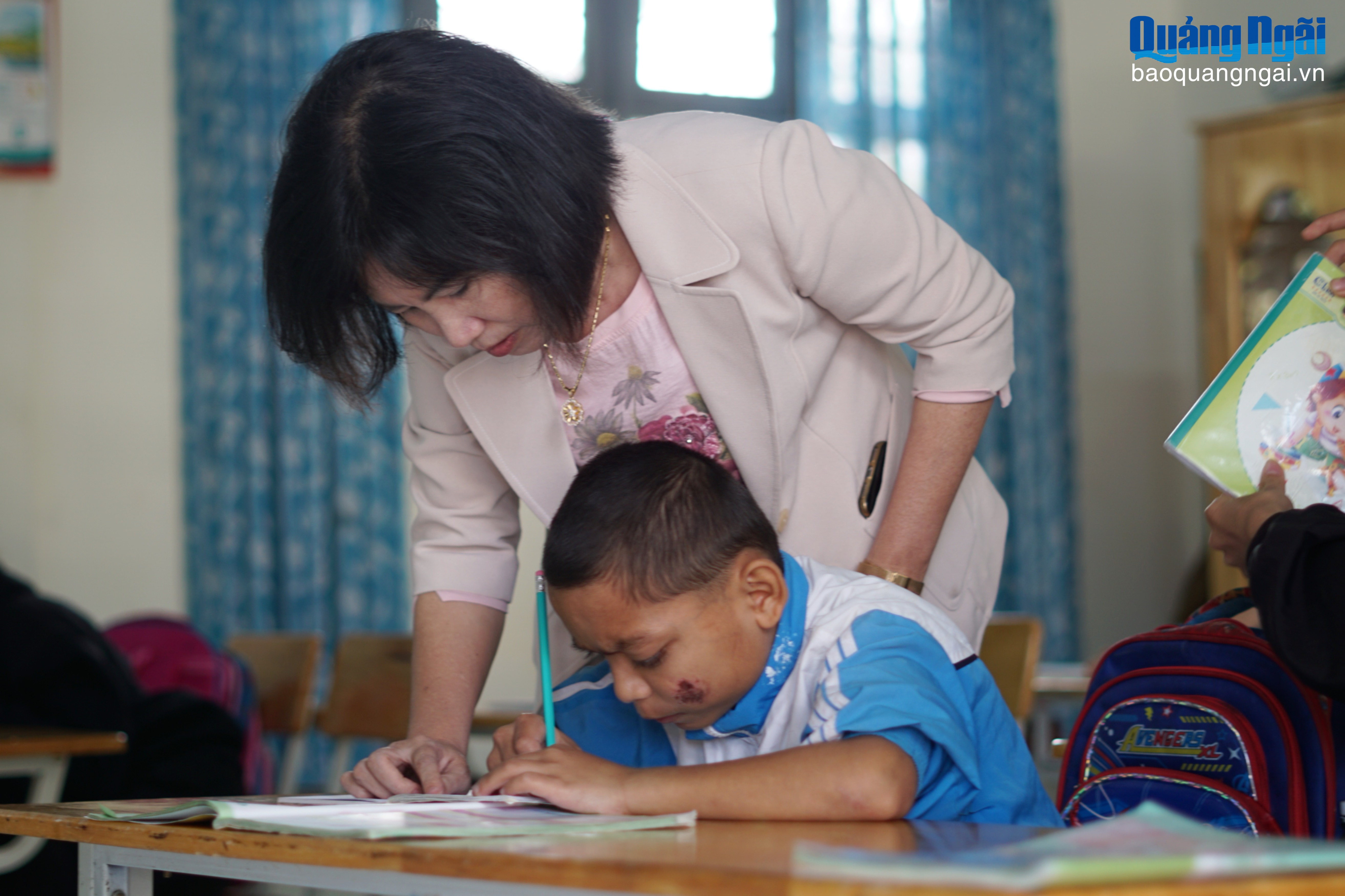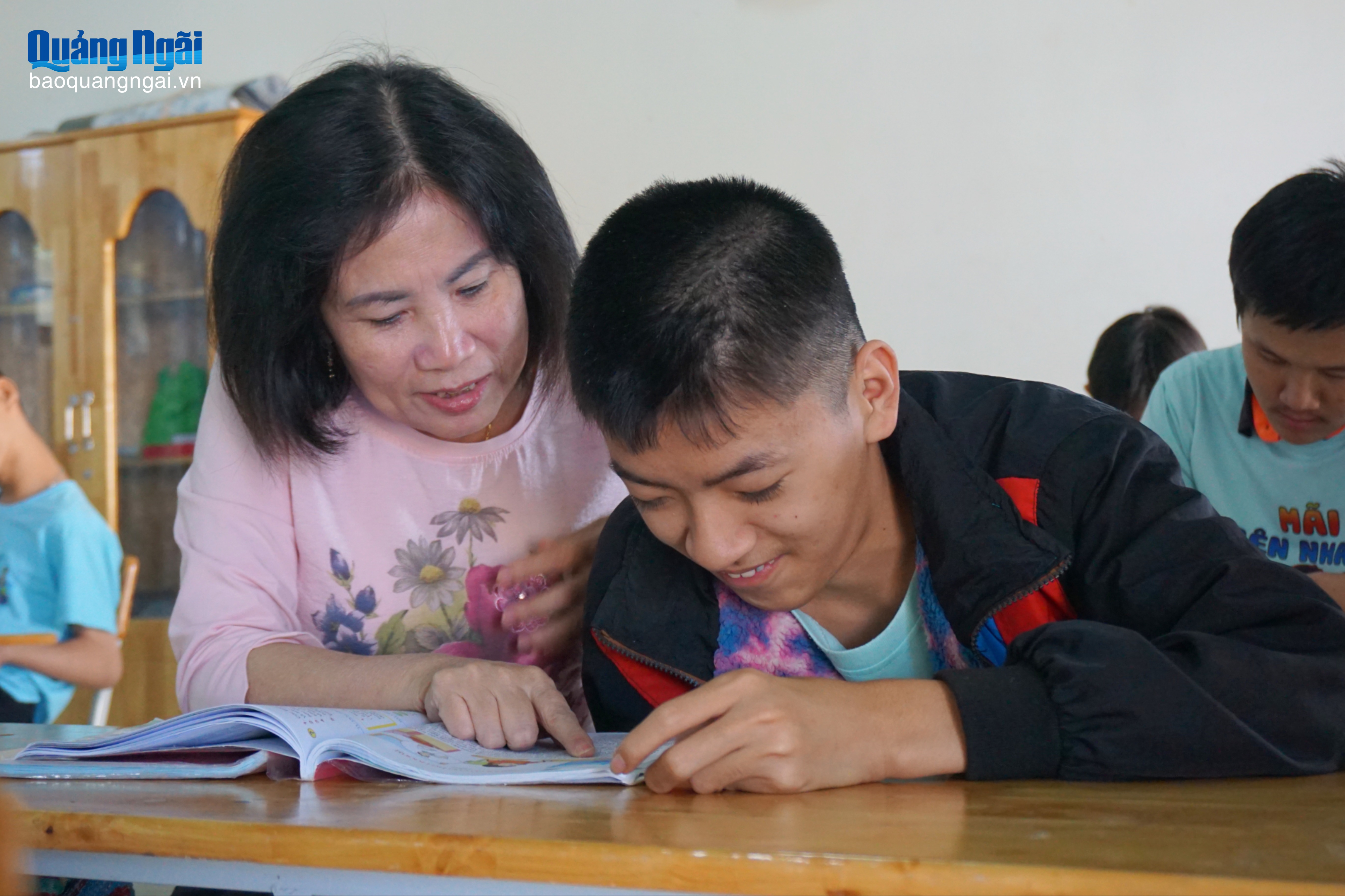 Suốt 18 năm đứng lớp, cô Quyên chưa từng lùi bước trước bất kỳ khó khăn nào. Mỗi buổi dạy với cô đều là một lần bắt đầu lại. Bởi với trẻ khuyết tật, không có gì là đương nhiên, không có bài học nào là cũ. Có em hôm nay nhớ, nhưng ngày mai lại quên. Có em vừa vui vẻ học bài, lúc sau lại ngồi lặng thinh. Những thay đổi tâm lý bất chợt ấy đòi hỏi ở cô Quyên không chỉ có kiến thức sư phạm mà còn phải có sự kiên trì, bao dung.
