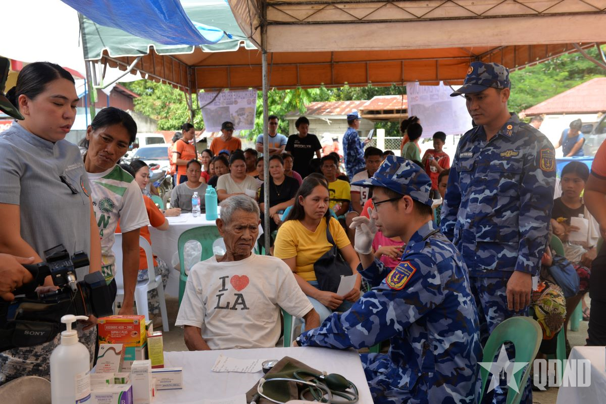Quân y Cảnh sát biển Việt Nam tham gia khám bệnh, cấp thuốc miễn phí cho người dân bị ảnh hưởng bởi siêu bão và động đất tại tỉnh Cebu, Philippines, tháng 10-2025.