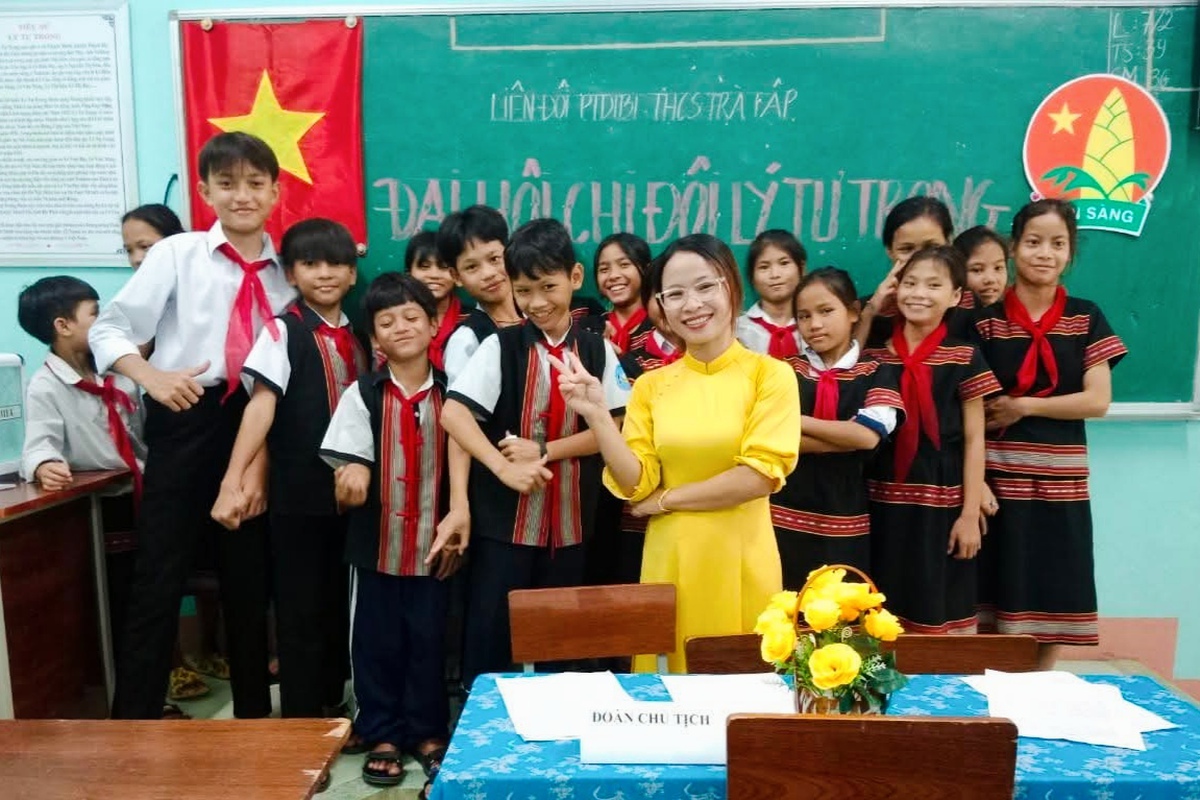 Cô giáo Đinh Thị Mia luôn khuyến khích học sinh mạnh dạn tham gia các hoạt động học tập và phong trào tại trường, giúp các em thêm tự tin và năng động.