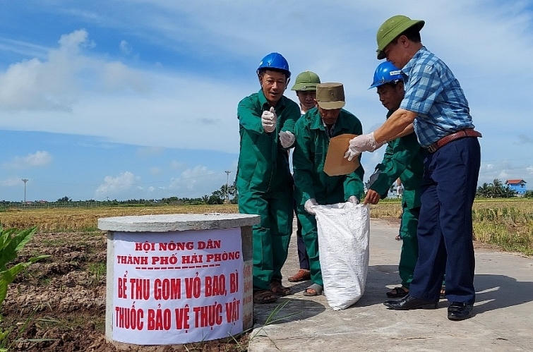 Hội Nông dân thành phố Hải Phòng xây dựng bể thu gom vỏ bao bì thuốc bảo vệ thực vật, góp phần hoàn thiện tiêu chí môi trường trong xây dựng Nông thôn mới. Ảnh: TTHH
