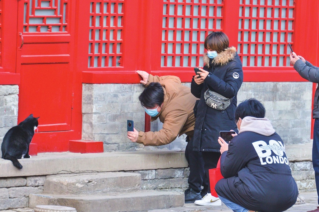 Du khách chụp ảnh "mèo hoàng gia" tại Bảo tàng Cố cung ở Bắc Kinh, ngày 22/12/2021. Ảnh: VCG.