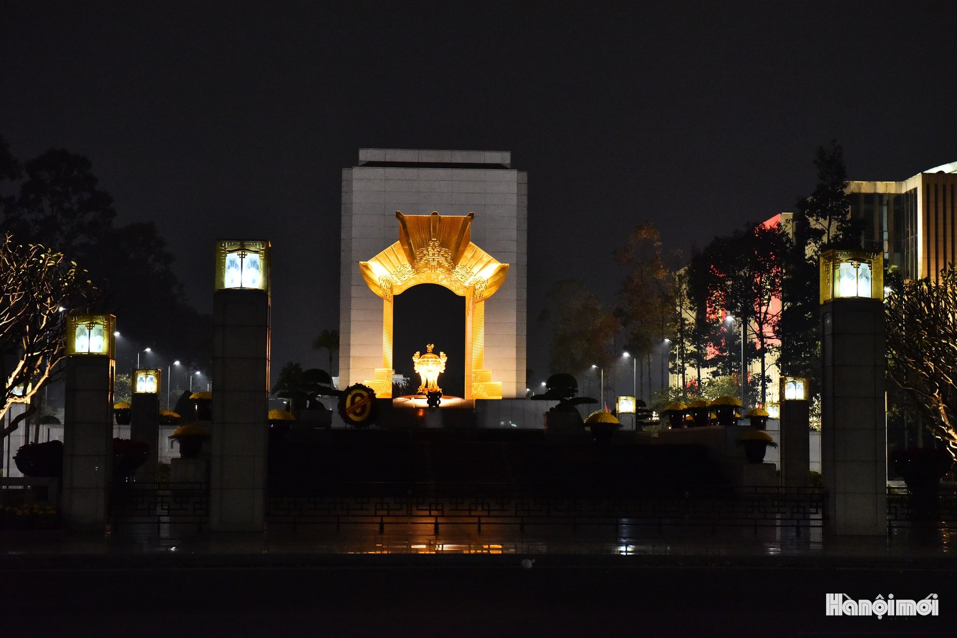Đài tưởng niệm Bắc Sơn nổi bật trong đêm Hà Nội.