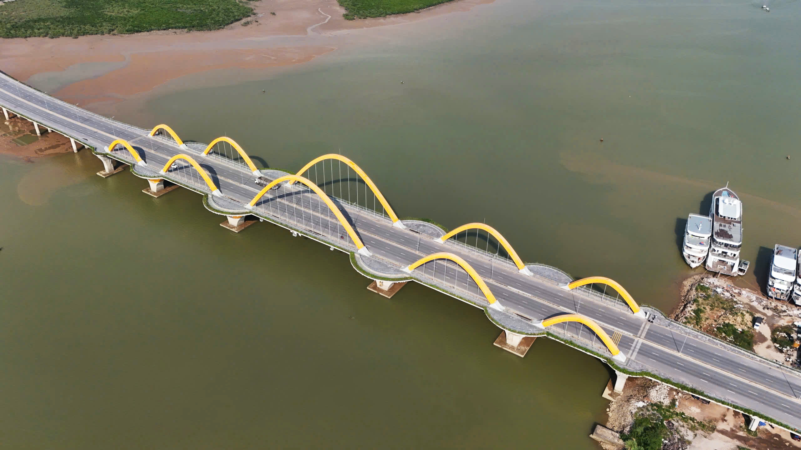 Công trình được đánh giá có những đột phá trong ngành xây dựng cầu Việt Nam, kết cấu 1 vòm thép, hai bên cầu có vỉa hè cho người đi bộ, có sàn vọng cảnh và bồn hoa tạo cảnh quan du lịch. Công trình có tổng mức đầu tư hơn 1.700 tỷ đồng từ ngân sách tỉnh Quảng Ninh.