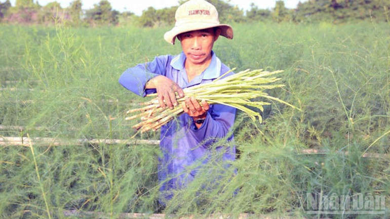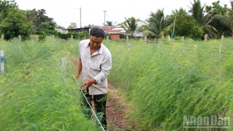 Đồng bào dân tộc Chăm xã Phước Dinh trồng cây măng tây trên vùng đất khát, đem lại thu nhập từ 500-800 triệu đồng/ha/năm.