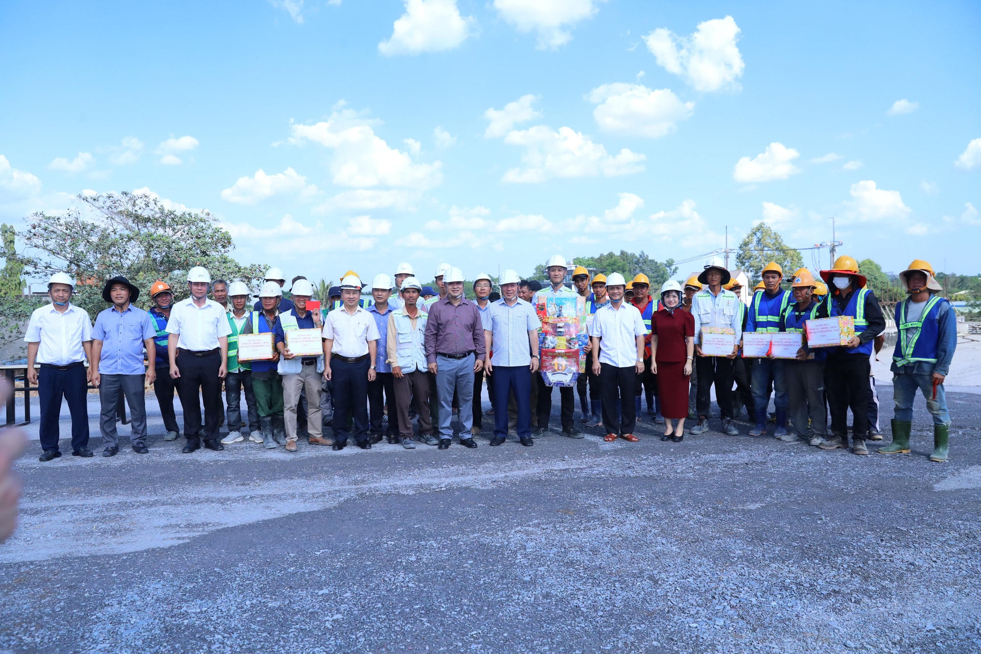 Đoàn công tác tỉnh Đồng Nai đến thăm, chúc Tết và động viên đội ngũ cán bộ, kỹ sư, công nhân đang thi công xuyên Tết tại công trường dự án thành phần 1 tuyến cao tốc Biên Hòa - Vũng Tàu. Ảnh: Xuân Lộc.