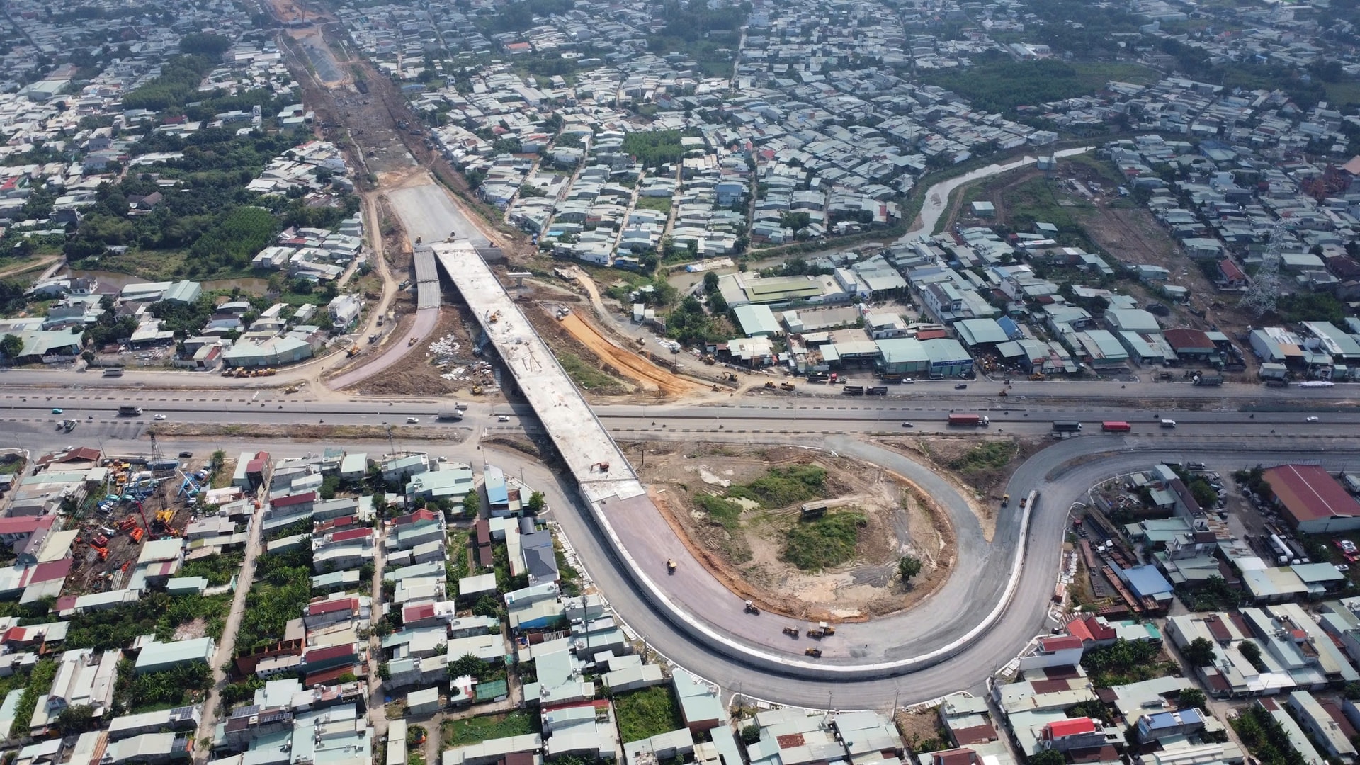Nút giao dự án thành phần 1 cao tốc Biên Hòa - Vũng Tàu giao với đường Võ Nguyên Giáp (tỉnh Đồng Nai). Ảnh: Nghiêm Ý.