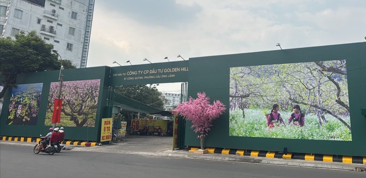 Mảng xanh và tiểu cảnh trang trí tết tại khu đất số 135, đường Nguyễn Huệ, phường Sài Gòn