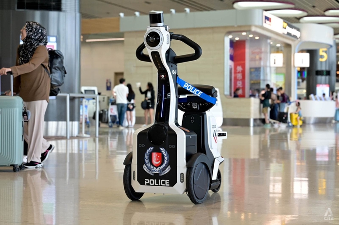GIBSON, robot trong nhà mới của Phòng Cảnh sát sân bay Singapore, tuần tra Nhà ga số 4 của sân bay Changi. Ảnh: CNA