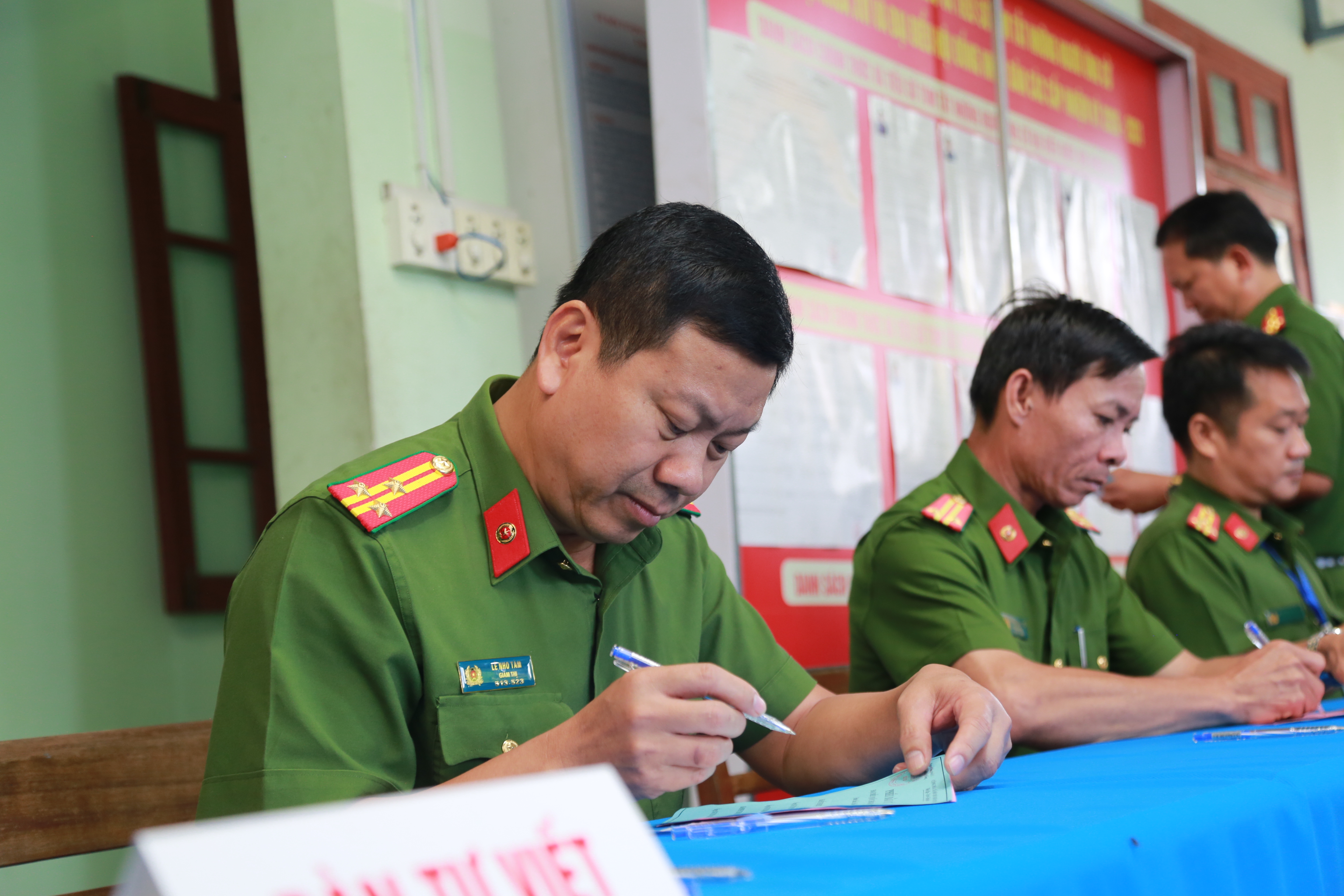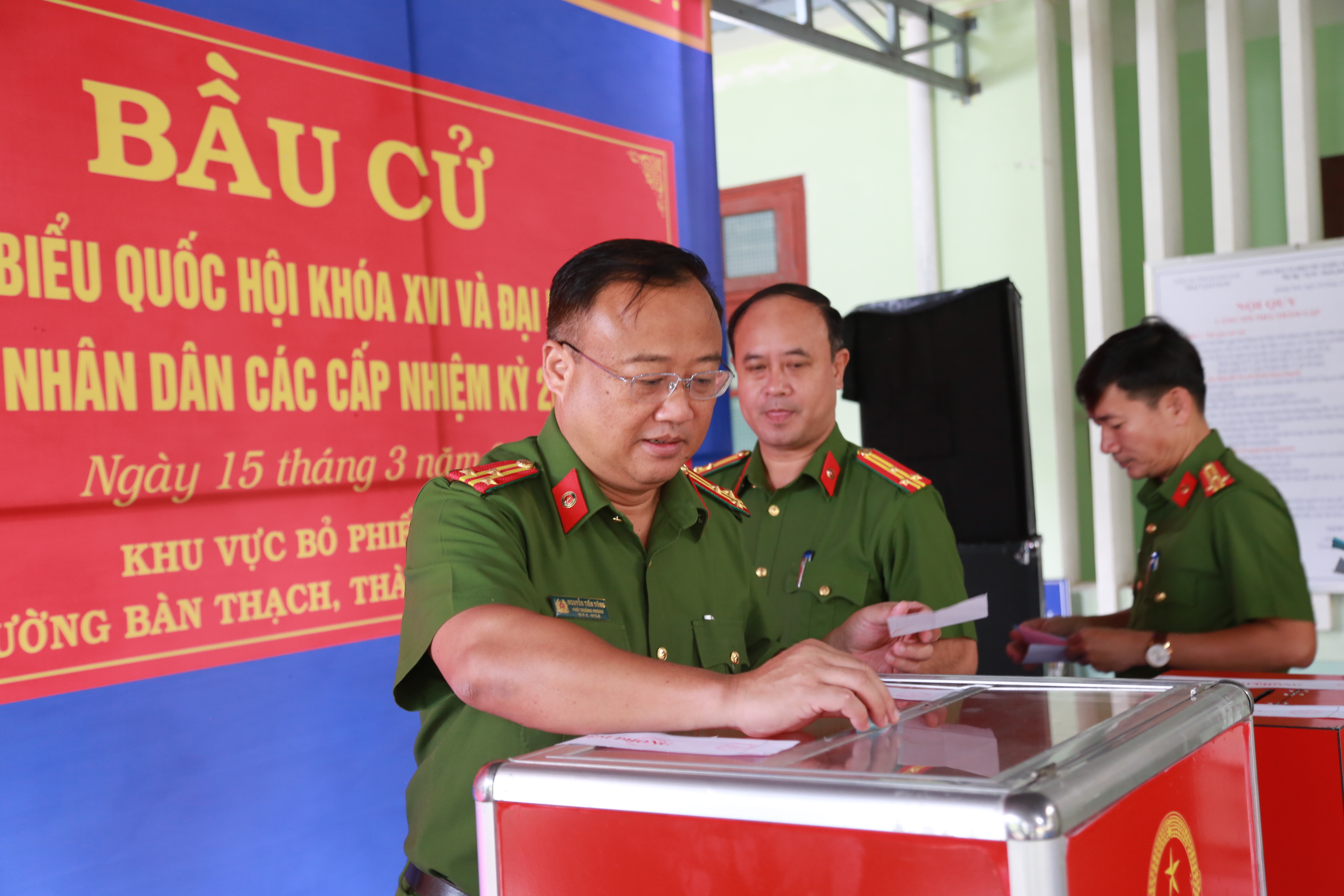 Thượng tá Lê Nho Tâm, Giám thị trại tạm giam số 2, tham gia bầu cử. Ảnh: TN