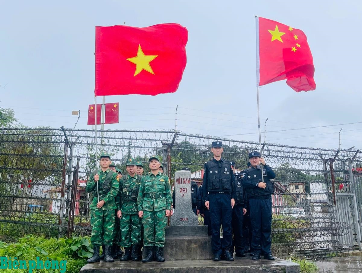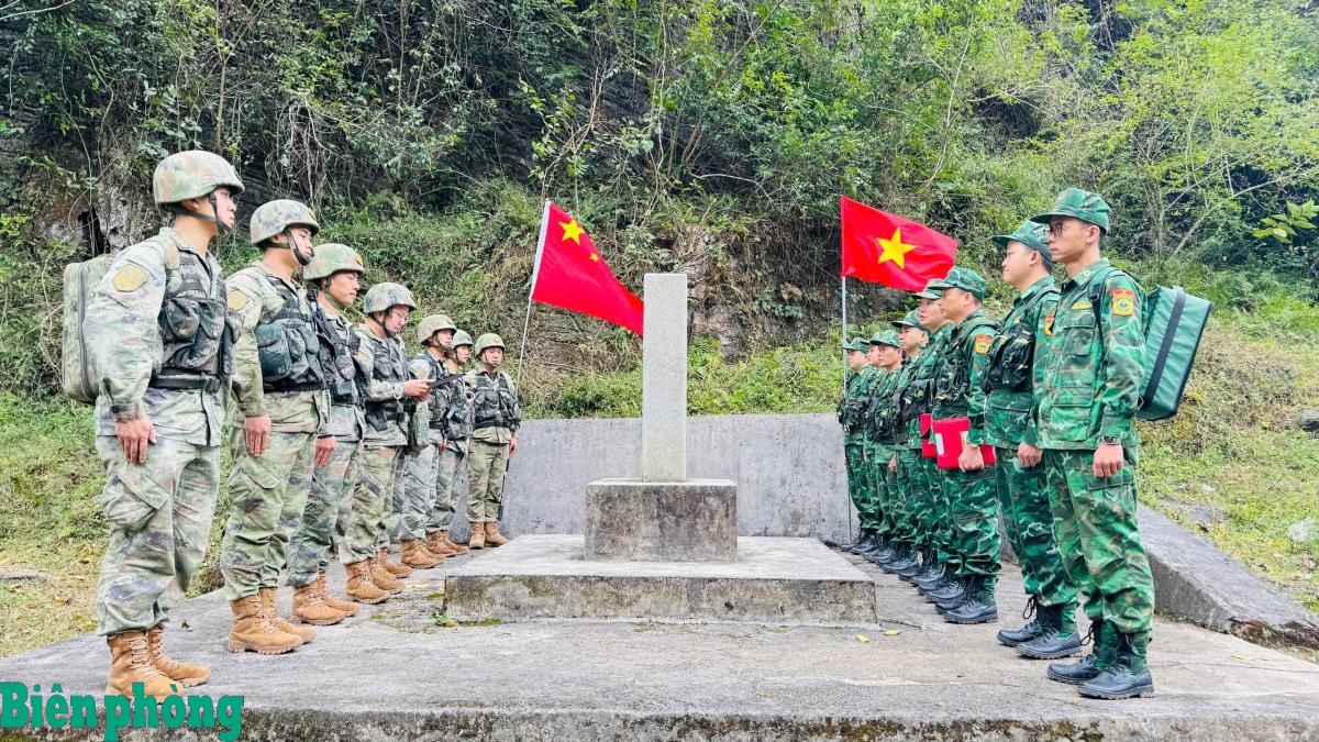 Đồn Biên phòng Tùng Vài, Bộ đội Biên phòng tỉnh Tuyên Quang phối hợp với Đồn Công an biên giới Từ Trúc Bạ, tỉnh Vân Nam (Trung Quốc) tổ chức tuần tra liên hợp, thực thi pháp luật trên tuyến biên giới Việt Nam-Trung Quốc. Ảnh: Hoàng Chính
