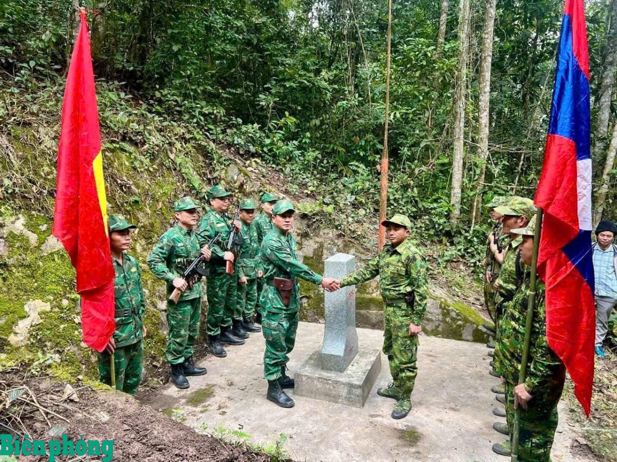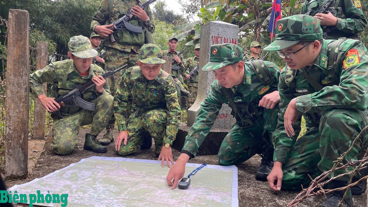 Đồn Biên phòng Nậm Lạnh, Bộ đội Biên phòng tỉnh Sơn La phối hợp với Đại đội Biên phòng 211, Bộ Chỉ huy Quân sự tỉnh Hủa Phăn (Lào) tuần tra bảo vệ biên giới. Hai bên đã tiến hành kiểm tra dấu hiệu đường biên giới, tình trạng an toàn của hệ thống mốc quốc giới Việt Nam - Lào từ khu vực Mốc quốc giới 163 đến Mốc quốc giới 165, đồng thời, trao đổi tình hình an ninh trật tự khu vực biên giới tiếp giáp. Ảnh: Vì Hiện