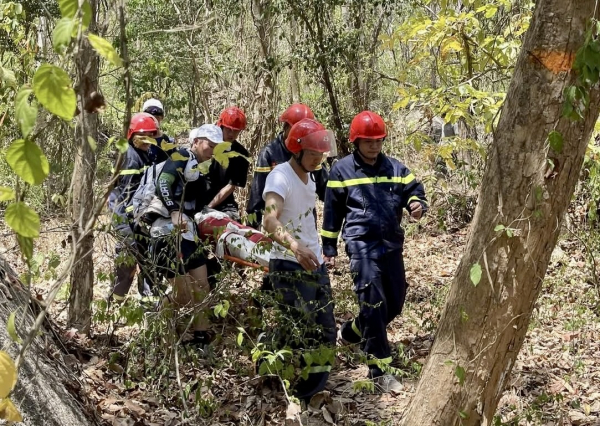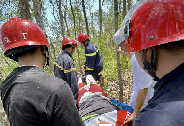 Tiếp nhận cuộc điện thoại, tổ công tác thuộc Đội Chữa cháy và CNCH KV23 nhanh chóng đưa phương tiện và cán bộ chiến sĩ xuống hiện trường. Địa hình nạn nhân gặp nạn khá hiểm trở bởi dốc đứng và nhiều cây cối, phương tiện cứu người không thể di chuyển thẳng vào nơi nạn nhân gặp nạn. Cán bộ chiến sĩ trong đội phải leo theo đường mòn với nhiều công cụ hỗ trợ trên người vượt hơn 2km mới đến được chỗ nạn nhân.