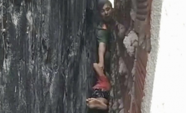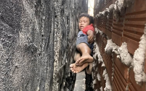 Bé Đ. bị mắc kẹt giữa 2 vách nhà trong lúc đi tìm mèo.