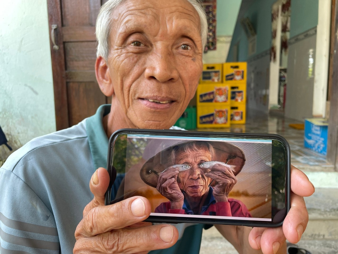 Nói về bức ảnh “mắt cá” mà ông là nhân vật, ông Mười cho biết tới nay ông cũng không biết tác giả thực sự là ai. Chỉ xác định được rằng bức ảnh đó được chụp năm 2025 vì cái áo màu đỏ ông mặc lúc đó được mua thời điểm đó.