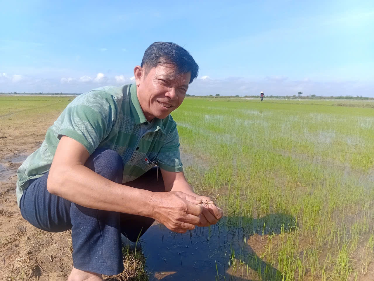 Ông Nguyễn Văn Hoàng, Phó Giám đốc HTX DVNN Đức Phú trên cánh đồng lúa
