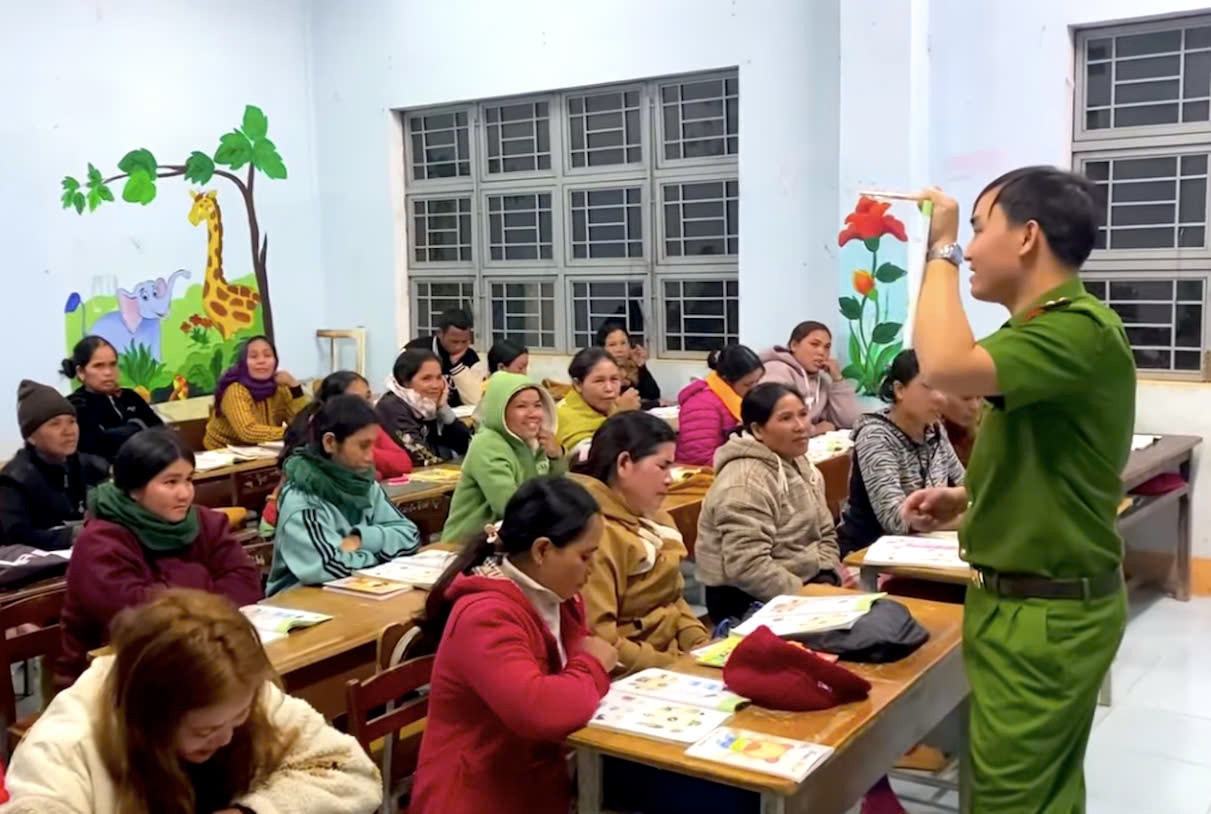 Lớp học vui vẻ, đầm ấm nên ngoài việc dạy chữ, lực lượng công an luôn động viên bà con vượt qua khó khăn, đi học chuyên cần để cải thiện trình độ dân trí; lồng ghép tuyên truyền chủ trương, đường lối của Đảng, chính sách, pháp luật của Nhà nước nhằm nâng cao nhận thức, trách nhiệm của người dân trong đảm bảo an ninh trật tự tại địa phương.