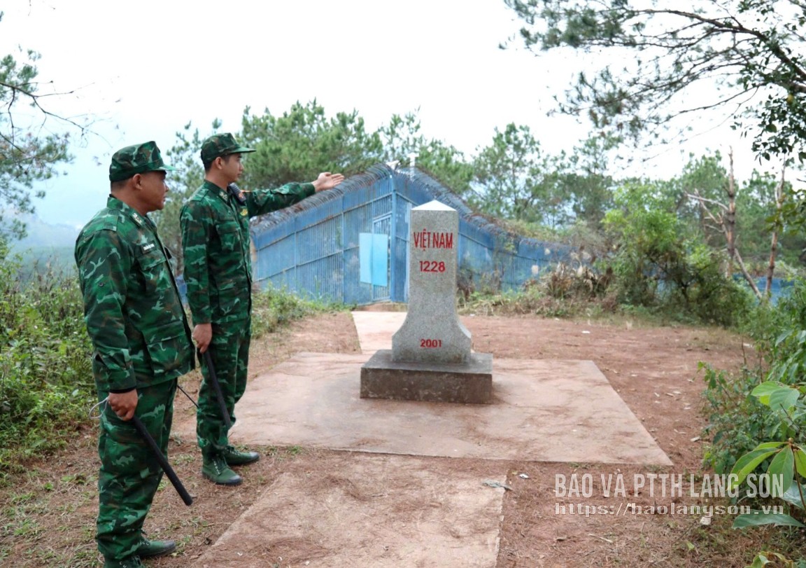 Cán bộ, chiến sĩ Đồn Biên phòng cửa khẩu Chi Ma thực hiện nhiệm vụ trong ngày giáp Tết Bính Ngọ 2026 tại khu vực mốc 1228 (xã Mẫu Sơn)