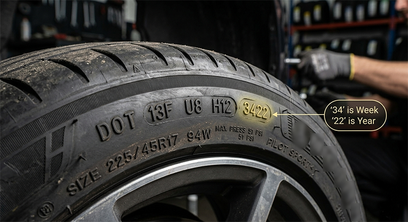 Một thành phần không thể bỏ qua trong dãy số trên lốp xe ô tô chính là mã DOT (Department of Transportation). Bốn chữ số cuối cùng trong dãy DOT sẽ cho biết thời gian xuất xưởng của lốp.