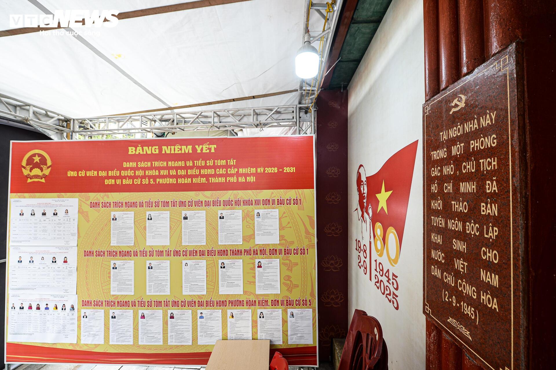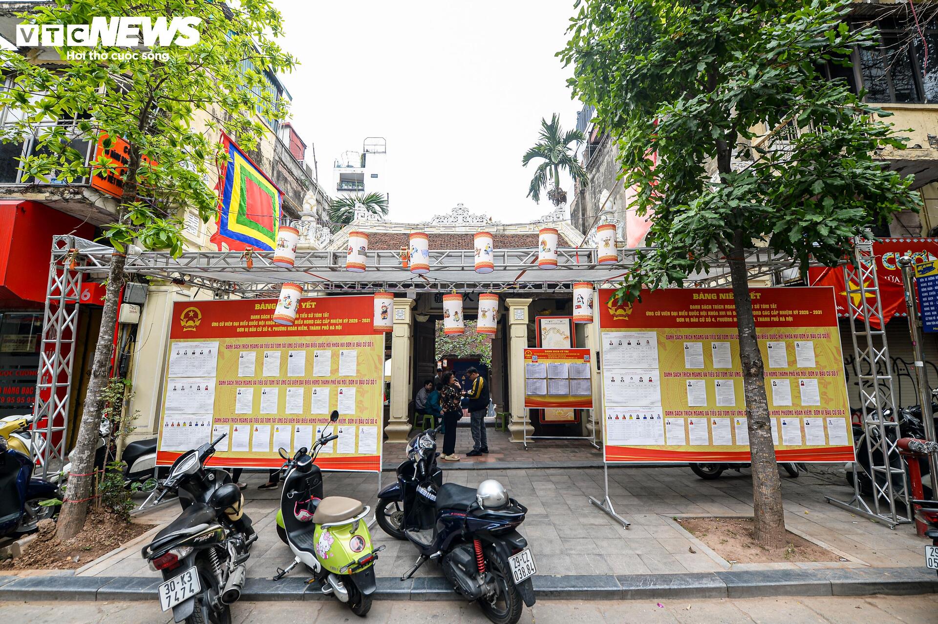 Tại đình Kim Ngân trên phố Hàng Bạc, các bảng niêm yết danh sách cử tri và danh sách người ứng cử được đặt ngay trong khuôn viên di tích.