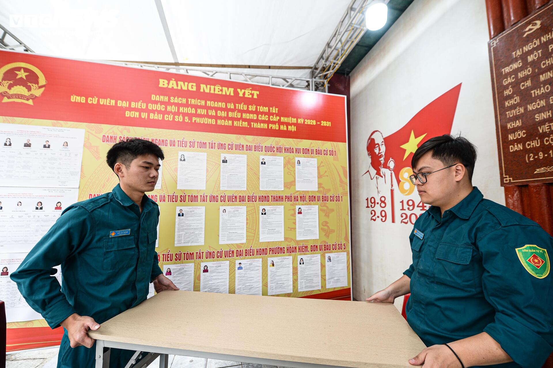 Trong khi đó, tại khu vực bỏ phiếu số 21 ở phố Chả Cá, các thành viên tổ bầu cử đang tiếp tục rà soát lại từng khâu chuẩn bị để đảm bảo mọi việc diễn ra đúng quy định trong ngày bầu cử.