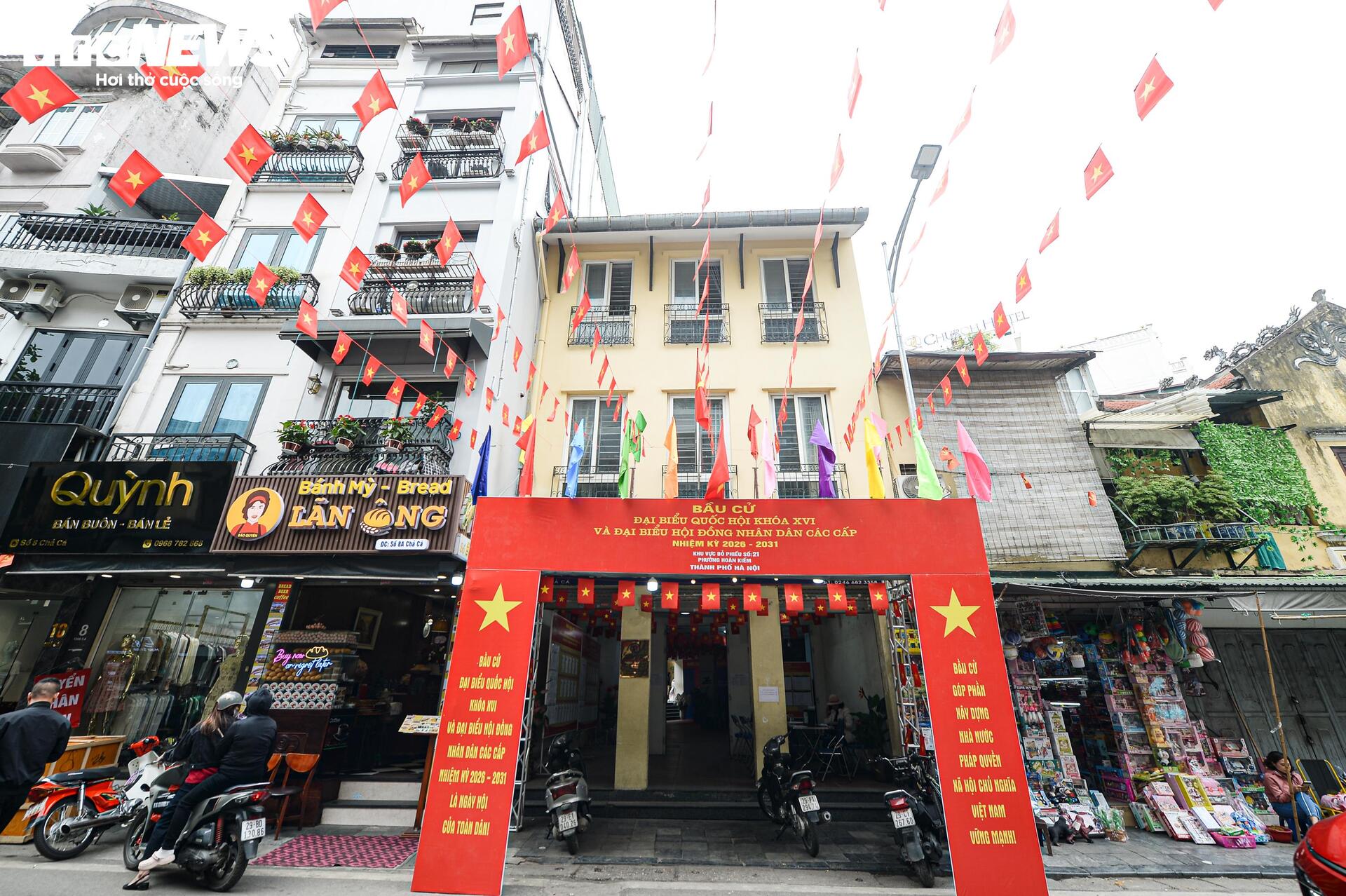 Cách đó không xa, di tích lịch sử - văn hóa tại số 48 Hàng Ngang cũng được bố trí làm khu vực bỏ phiếu thuộc đơn vị bầu cử số 5 của phường Hoàn Kiếm.