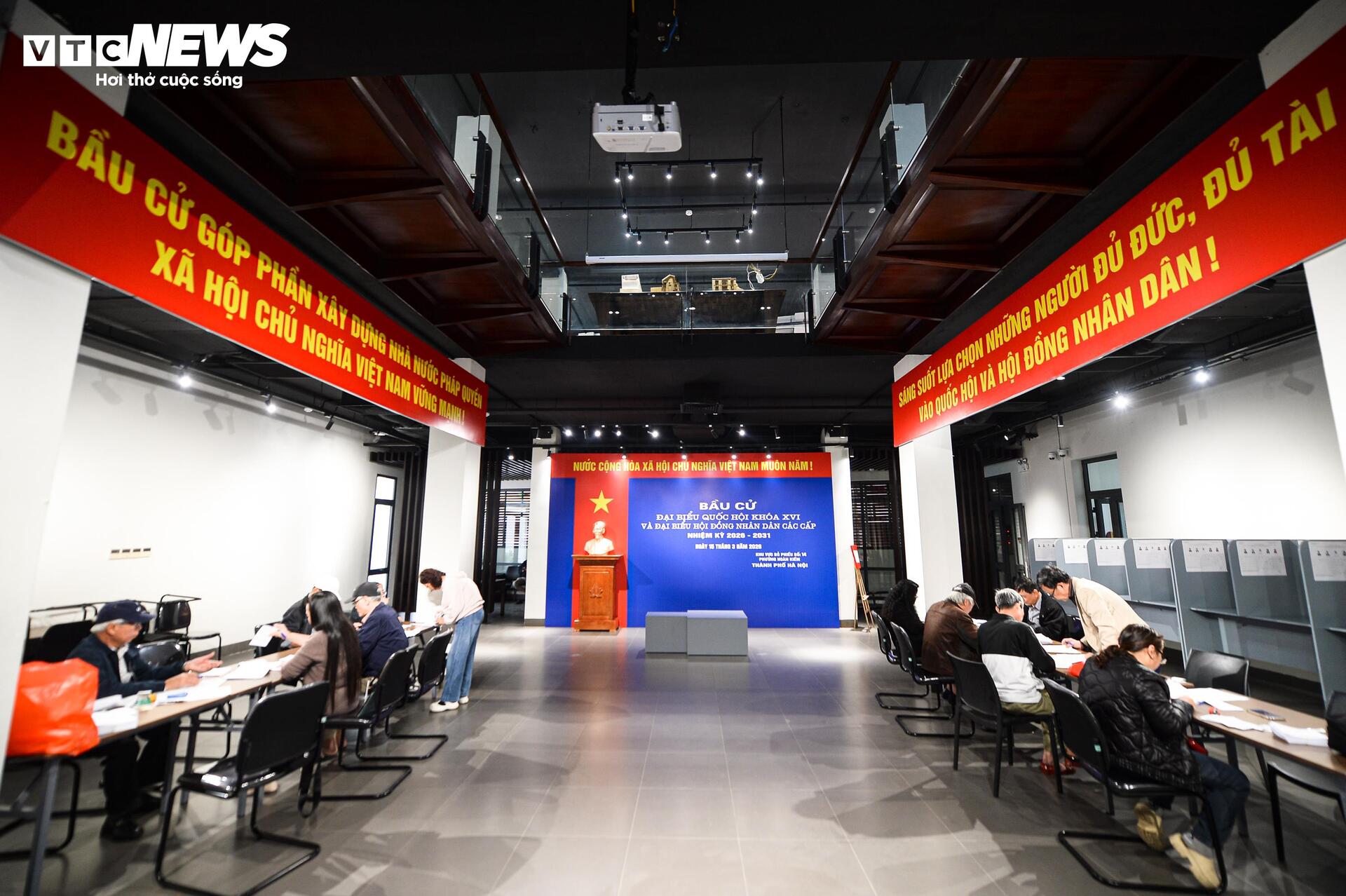 Ghi nhận của PV Báo Điện tử VTC News tại khu vực bỏ phiếu số 14 trên địa bàn phường Hoàn Kiếm, công tác chuẩn bị đã cơ bản hoàn tất.