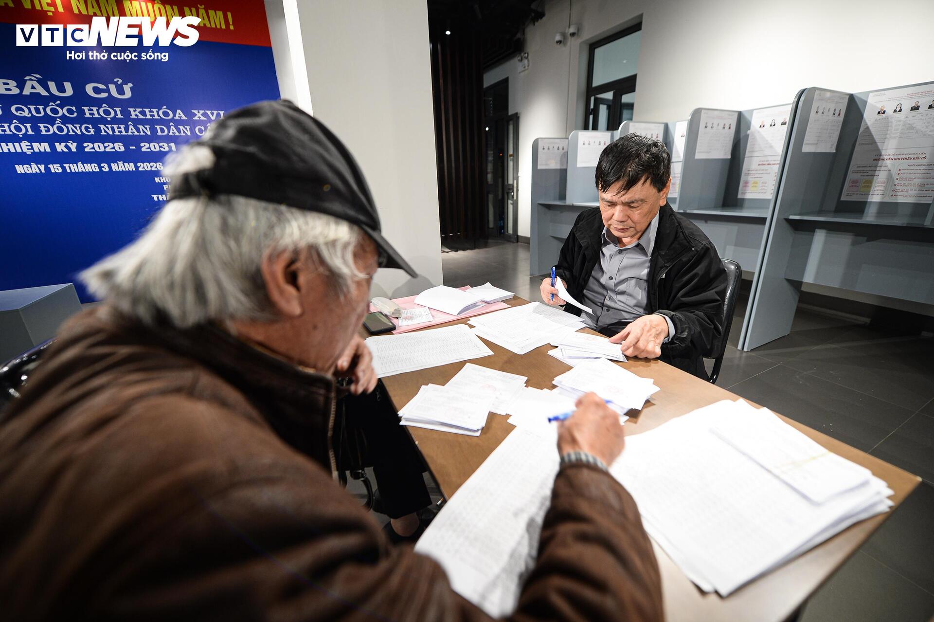 Tại các khu vực bỏ phiếu khác trên địa bàn Hà Nội, công tác chuẩn bị cũng đã hoàn tất. Thẻ cử tri được sắp xếp theo từng hộ gia đình để thuận tiện cho việc phát đến người dân. Bên trong điểm bỏ phiếu, bàn viết phiếu được bố trí hợp lý, kèm theo đầy đủ thông tin về các ứng cử viên.