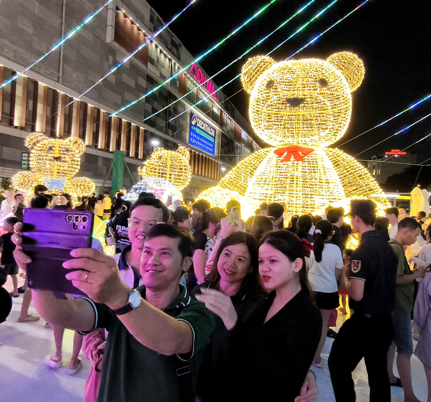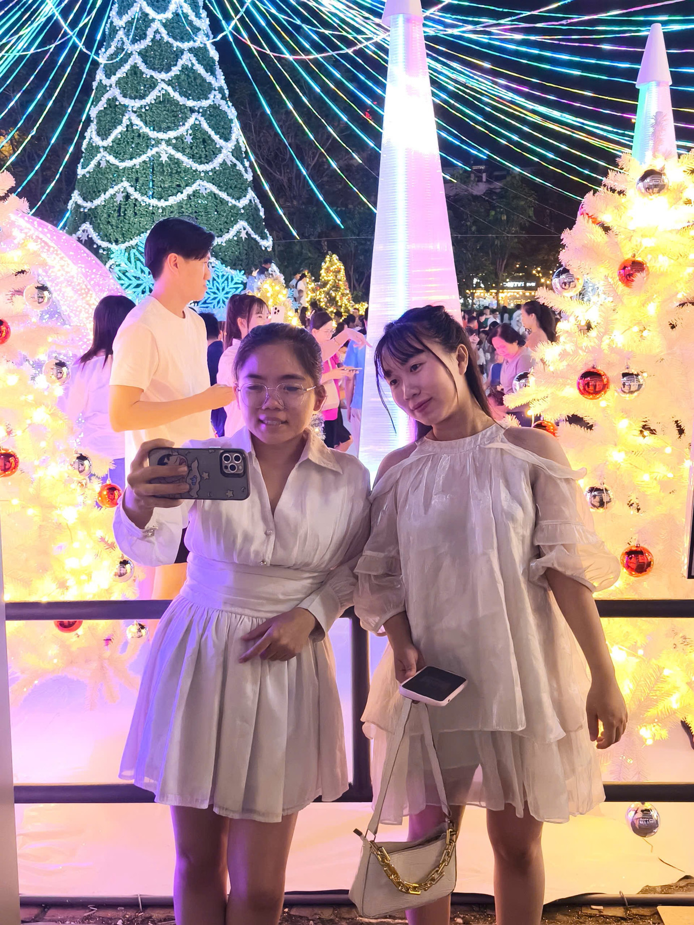 Không chỉ đến để mua sắm, ăn uống và vui chơi, nhiều bạn trẻ tranh thủ đến các trung tâm thương mại trước mùa lễ Noel để chụp ảnh làm kỷ niệm. Hà Mi (P. Tân Phú) cho biết: “Tụi mình đi sớm sẽ tránh được việc phải chen chúc đông người, không phải chờ lâu tại một tiểu cảnh khi chụp ảnh”.