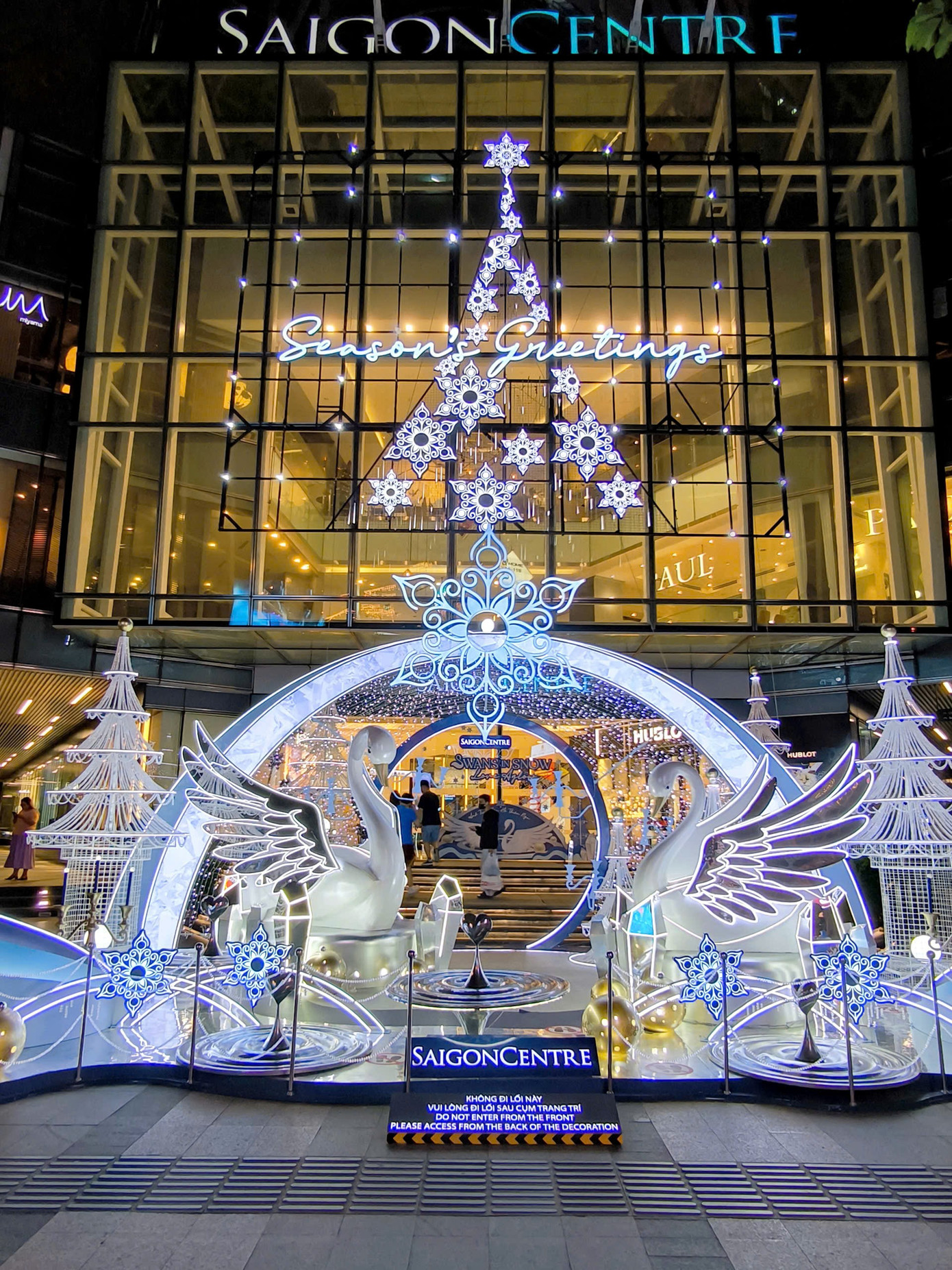 Ở TP. HCM, các trung tâm thương mại thu hút các “thượng đế” trẻ bằng sự sáng tạo trong việc trang trí Noel. Hàng loạt trung tâm thương mại lớn như Takashimaya, Aeon Mall, Vạn Hạnh Mall, Crescent Mall, Diamond Plaza… đều “phô diễn” những màn trang hoàng Giáng sinh rực rỡ và sáng tạo để thu hút khách hàng đến tham quan.