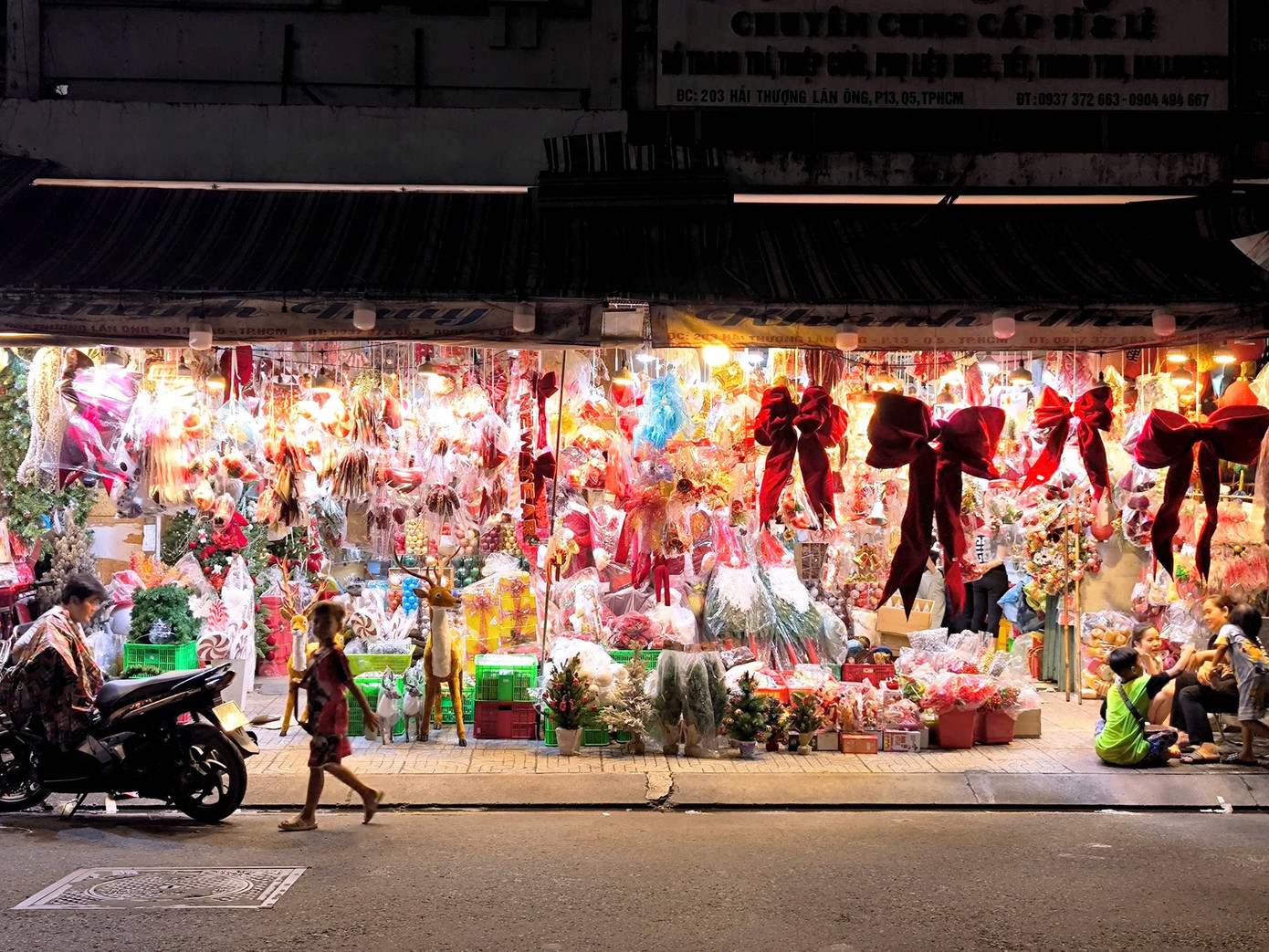 Hải Thượng Lãn Ông là con đường được nhiều bạn trẻ ví von là “thay màu nhanh hơn người yêu cũ lật mặt”. Bởi vì, trước mỗi dịp lễ nào đó, con đường này luôn đổi màu sắc trang hoàng sớm nhất tại TP. HCM. Với mùa Giáng sinh năm nay, các tiểu thương trên đường này đã nhộn nhịp trưng bày những sản phẩm trang trí bắt mắt thu người qua đường.
