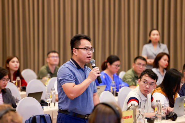 Phóng viên báo chí đặt câu hỏi tại họp báo.
