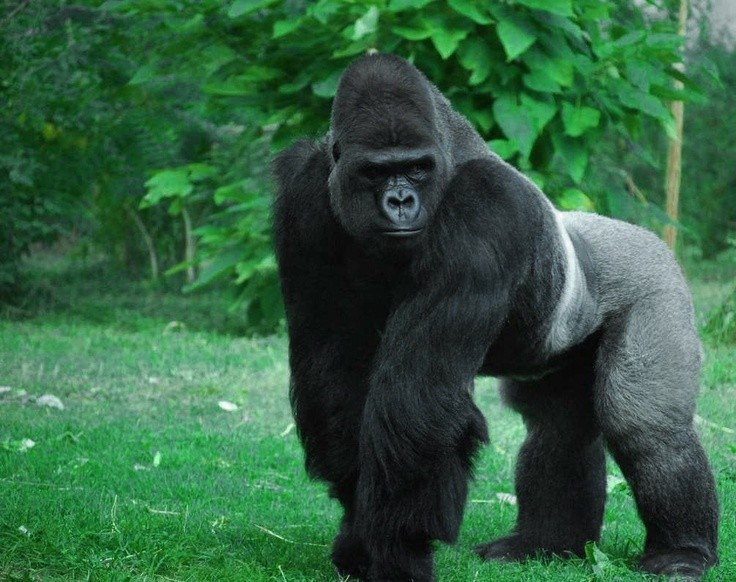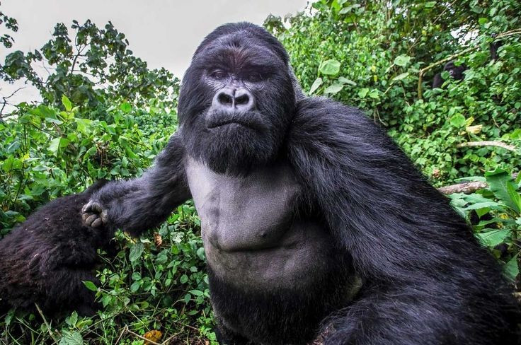 Khỉ đột miền Đông là loài lớn nhất trong họ linh trưởng. Một con đực trưởng thành có thể nặng hơn 200 kg và cao tới 1,8 m khi đứng thẳng. Ảnh: Pinterest.