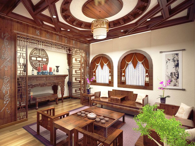 Phòng thờ nên sơn màu sẫm hoặc tối, chủ yếu là màu nâu gỗ và các màu liên quan như: vàng đậm, cam, nâu, xám, trắng…