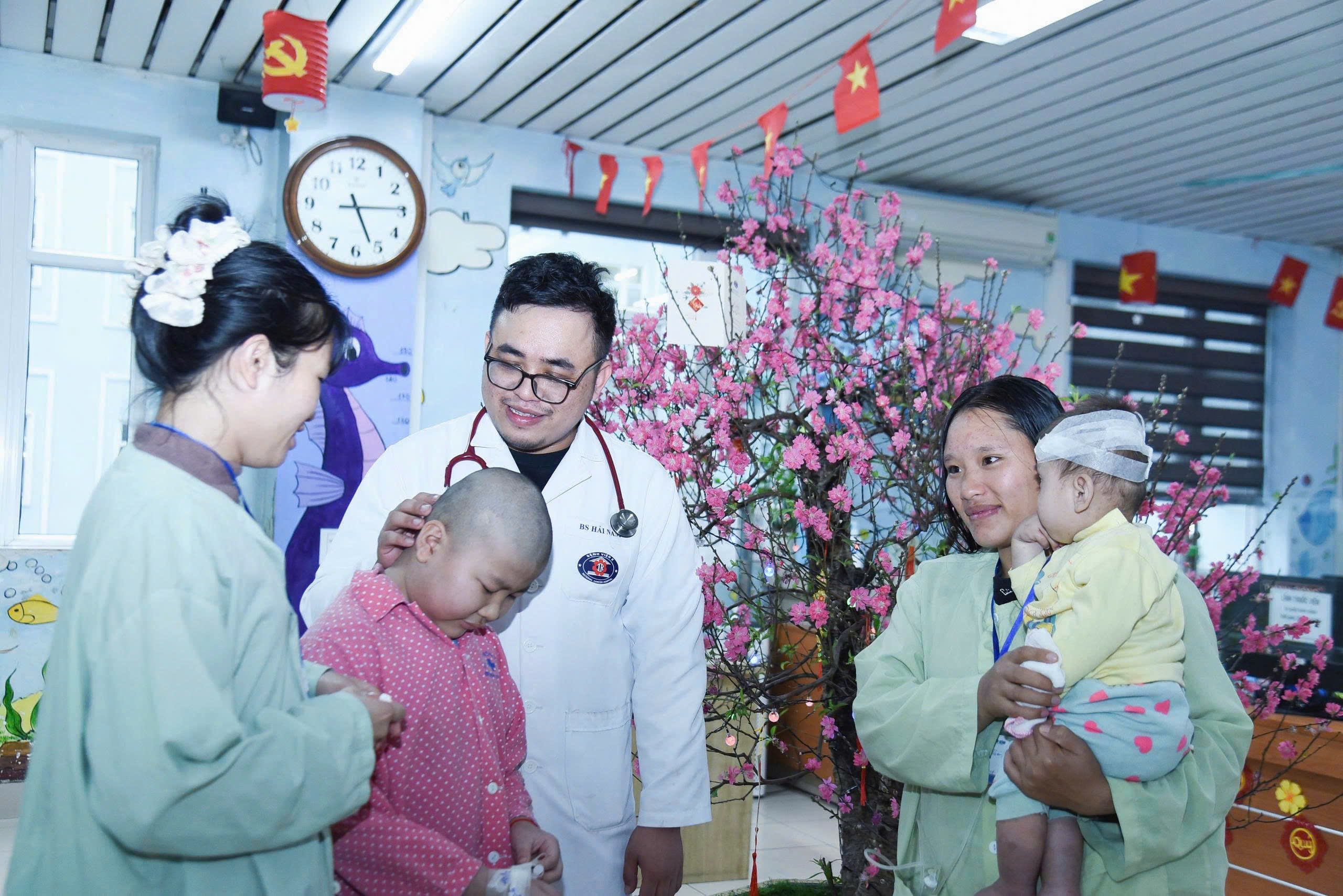 Tại Khoa Nội Nhi, số lượng bệnh nhi ung thư ở lại điều trị thường ít hơn ngày thường. Y bác sĩ luôn cố gắng sắp xếp để tối đa các cháu nhỏ được xuất viện về ăn Tết cùng gia đình. Khoảng 10 đến 20 bệnh nhi ở lại khoa dịp Tết thường là trường hợp cấp cứu, mới được chẩn đoán khối u lớn, ung thư huyết học hoặc một số ung thư phần mềm, u não với phác đồ điều trị hàng ngày hoặc theo tuần. Do đa số là bệnh nhân nặng, các bác sĩ phải theo dõi sát hơn để kịp thời xử lý khi có vấn đề bất thường.