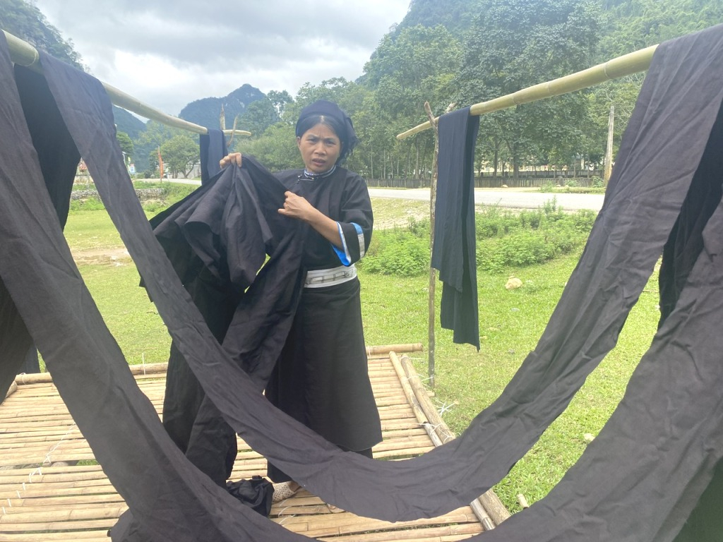 Chị Nông Thị Tìn, xóm Đoàn Kết, xã Quảng Uyên giữ gìn nghề nhuộm vải chàm truyền thống người dân tộc Nùng An.