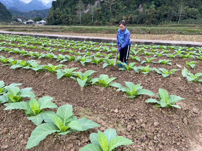 Chị Đàm Thị Ngân, xóm Nà Rị, xã Nam Tuấn chăm sóc cây thuốc lá.