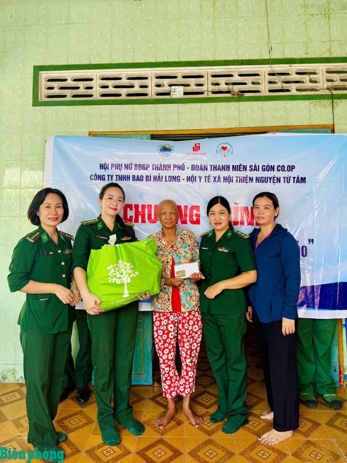 Cán bộ, hội viên phụ nữ Bộ đội Biên phòng thành phố Hồ Chí Minh tặng quà cho người dân có hoàn cảnh khó khăn dịp Tết Nguyên đán Bính Ngọ năm 2026. Ảnh: Lương Bình