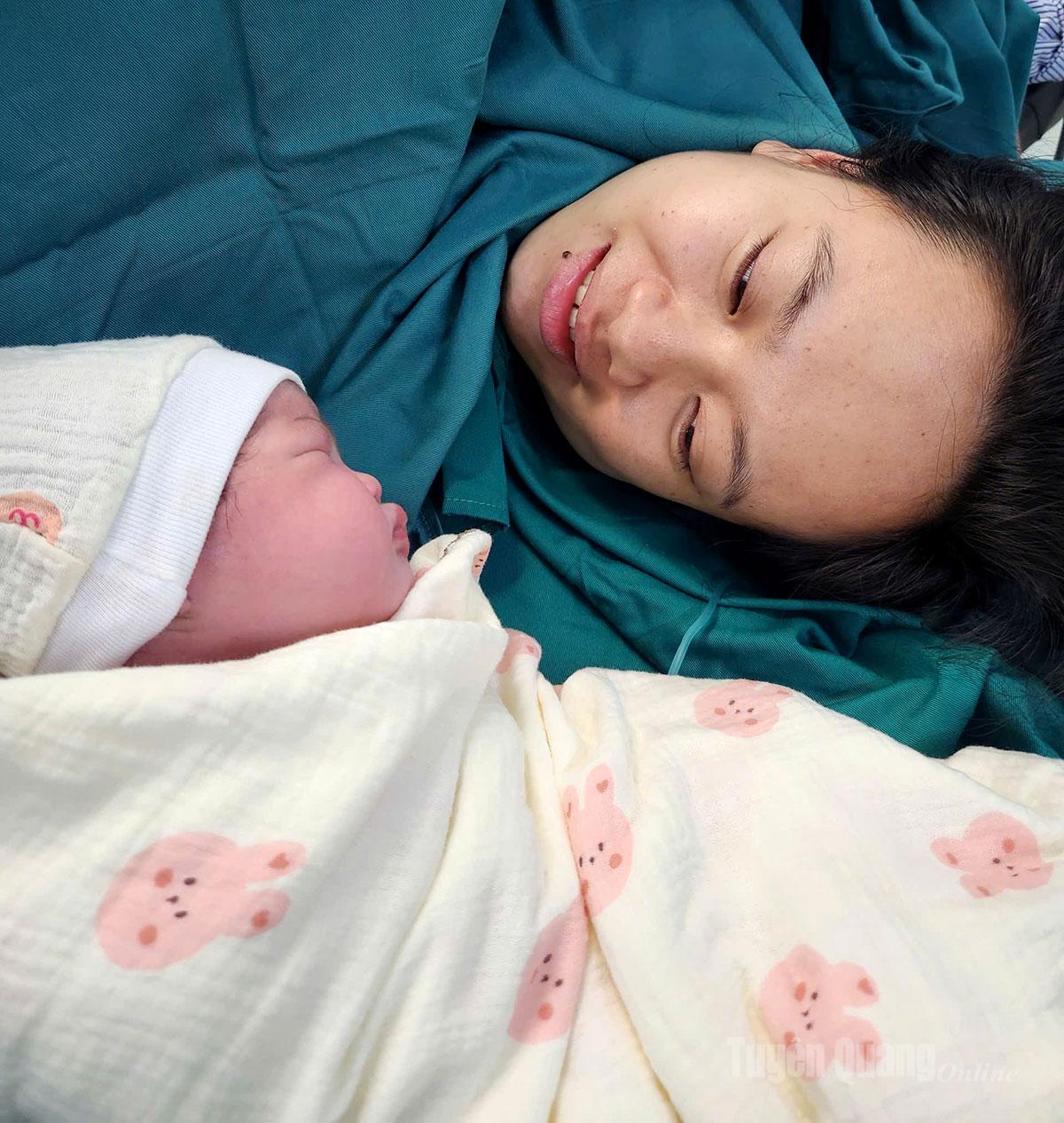Chị Hoàng Thị Lụa, tổ dân phố Trung Môn 6, phường Minh Xuân, mẹ của bé gái sinh mổ cho biết rất vui và cảm thấy ý nghĩa khi con mình là một trong những công dân nhí được sinh trong ngày đầu tiên của năm 2026.
