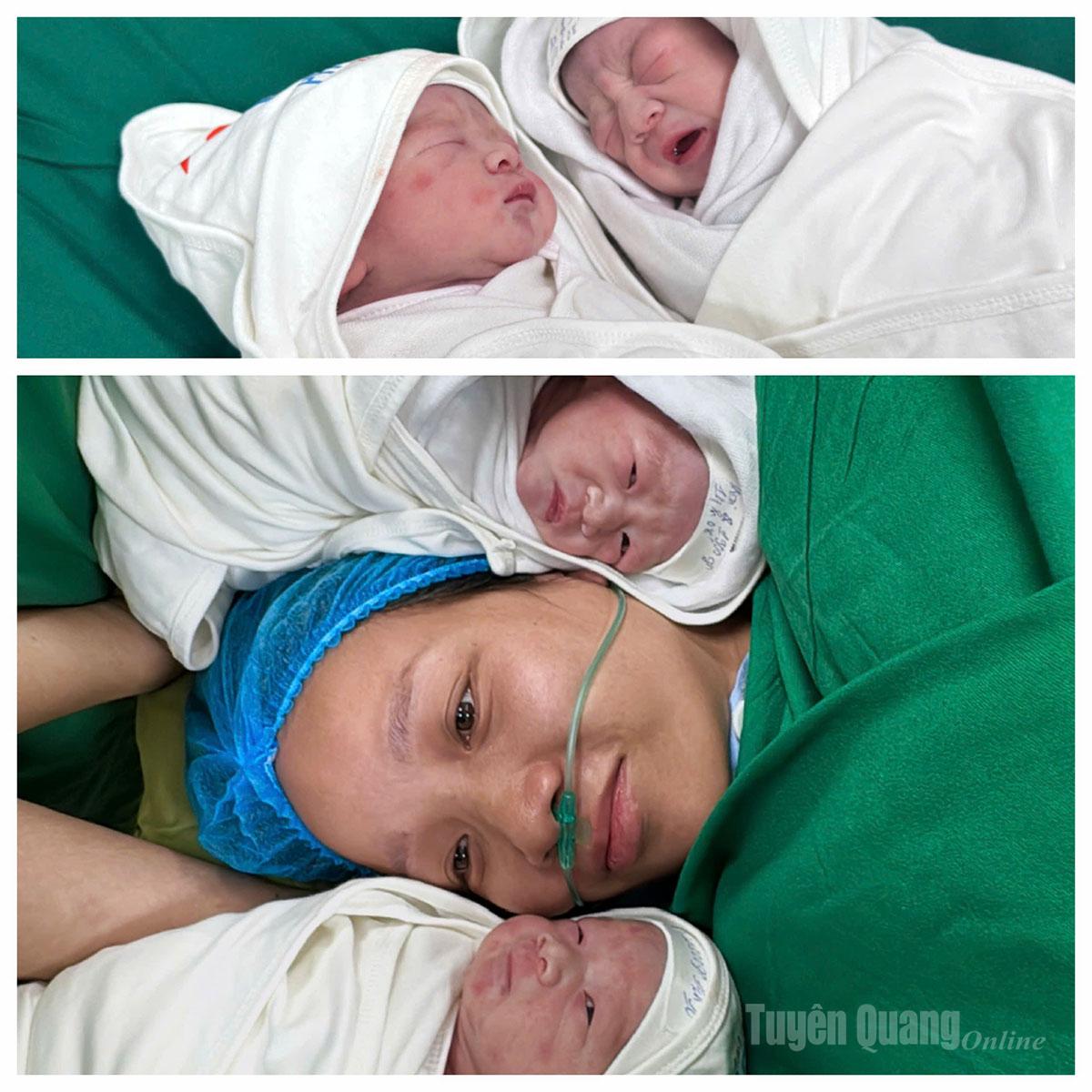 Hai bé trai con của sản phụ Hoàng Thị Hoa Cúc, phường Nông Tiến, sinh theo hình thức mổ đẻ. Theo chia sẻ của sản phụ Cúc, việc 2 cháu ra đời trong thời khắc đầu năm mới sẽ là một kỷ niệm đáng nhớ đối với bản thân của cháu cũng như gia đình và người thân.