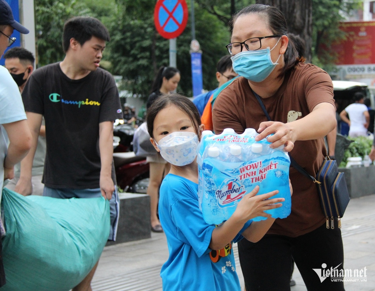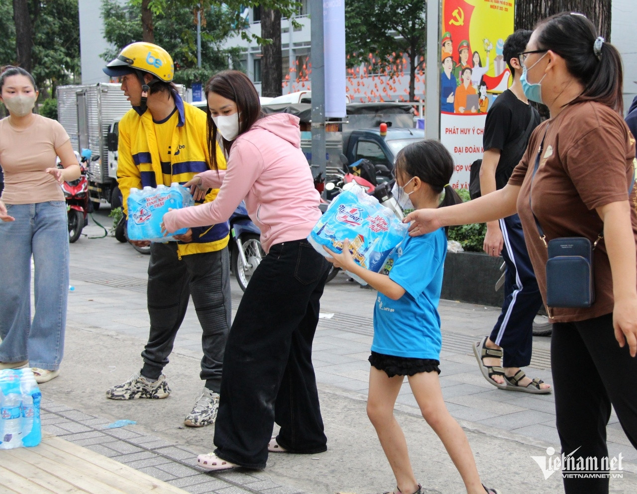 Có mặt tại Cung văn hóa lao động TPHCM, chị Ngân (37 tuổi, phường Chánh Hưng) đưa các con, cháu nhỏ chở theo nhiều thùng mì tôm, sữa, nước lọc đến khu vực tập kết hàng hóa. Trước đó, chị luôn theo dõi tình hình bão, lũ diễn ra tại các tỉnh miền Trung và chia sẻ thông tin với các con.