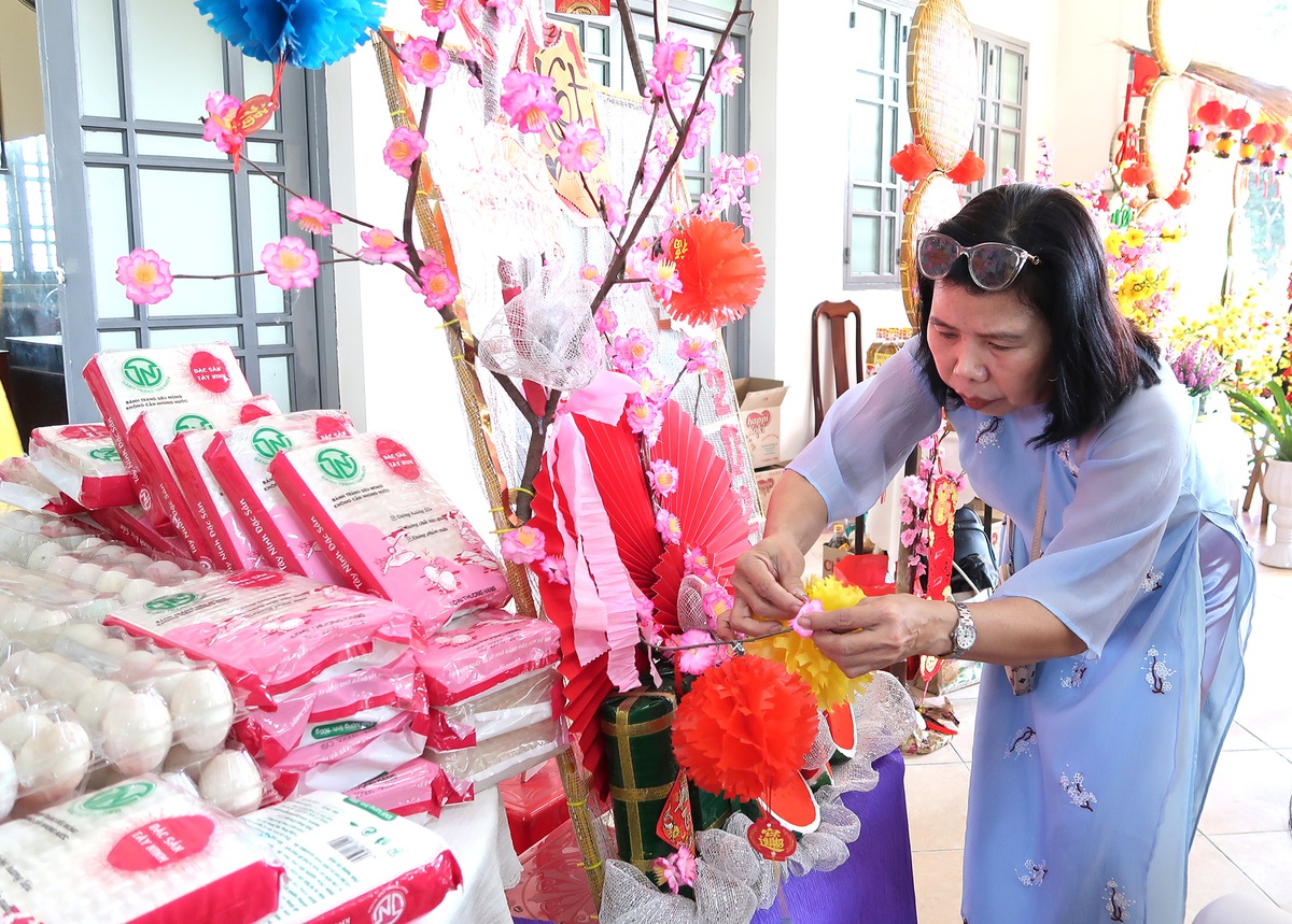 Chia sẻ thêm, chị Vinh Quang cho hay: "Mỗi đội phụ trách một mặt hàng khác nhau như bánh kẹo, dầu ăn, mì gói, bánh chưng, bánh tét, củ kiệu… để hỗ trợ chị em có hoàn cảnh khó khăn. Năm Bính Ngọ, đội chúng tôi trang trí gian hàng bằng cách xếp quà theo hình con ngựa. Hình thức chăm lo Tết này rất mới, vừa tạo sân chơi cho các chi hội, vừa lan tỏa tinh thần tương thân, tương ái, giúp chị em cùng đón Tết ấm áp hơn".