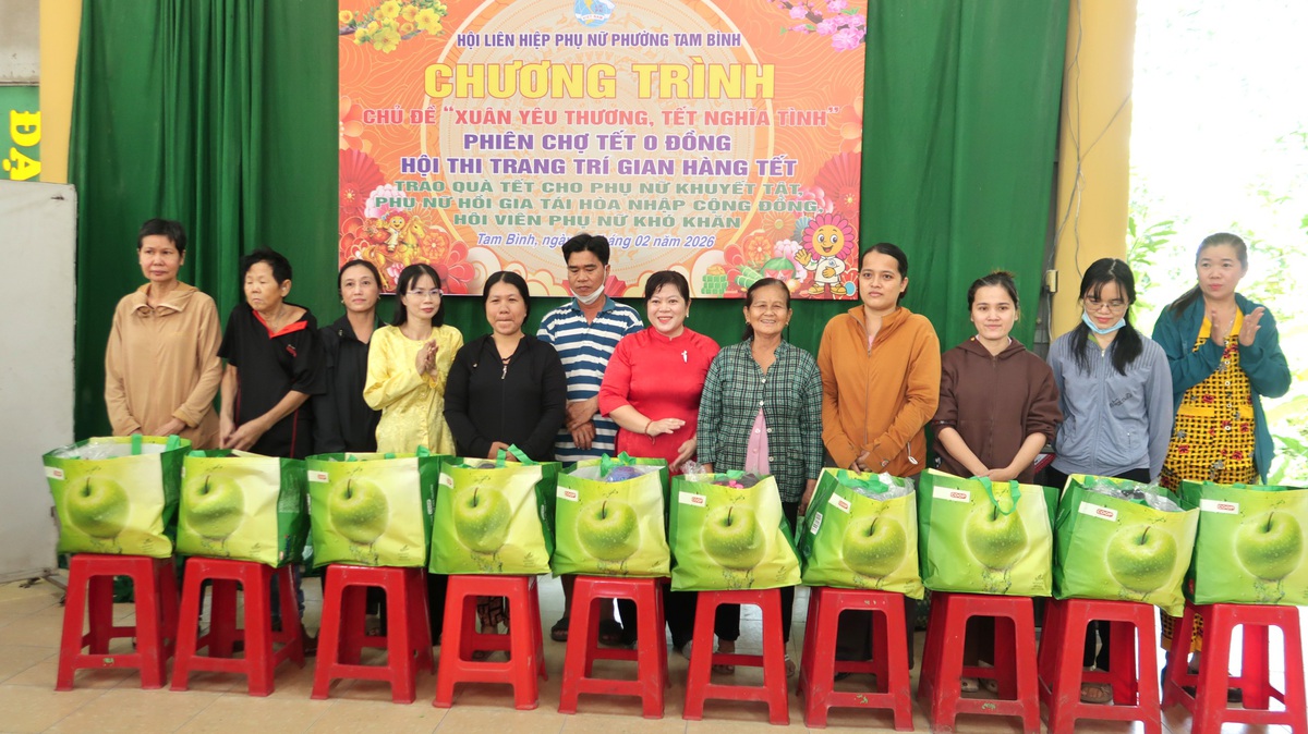 Phát biểu tại chương trình, bà Nguyễn Thị Thanh Tuyền, Phó Chủ tịch Ủy ban MTTQ Việt Nam phường, Chủ tịch Hội LHPN phường Tam Bình (TPHCM), cho biết: "Phiên chợ Tết 0 đồng và Hội thi trang trí gian hàng là một trong chuỗi hoạt động chăm lo Tết Nguyên đán Bính Ngọ 2026 với chủ đề "Xuân yêu thương - Tết nghĩa tình". Chương trình nhằm phát huy tinh thần tương thân, tương ái, huy động nguồn lực xã hội chăm lo cho cán bộ hội, hội viên phụ nữ khó khăn, trẻ em bị ảnh hưởng bởi dịch Covid-19. Mong rằng, các chị sẽ đón một cái Tết đủ đầy hơn".