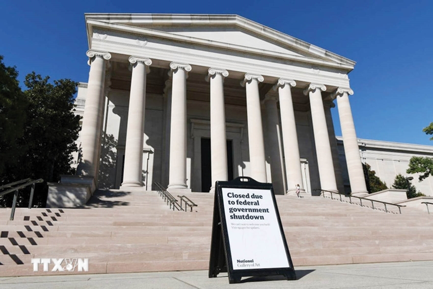 Bảng thông báo đóng cửa tại Phòng trưng bày Nghệ thuật quốc gia ở Washington, D.C., Mỹ ngày 5/10/2025. Ảnh: TTXVN