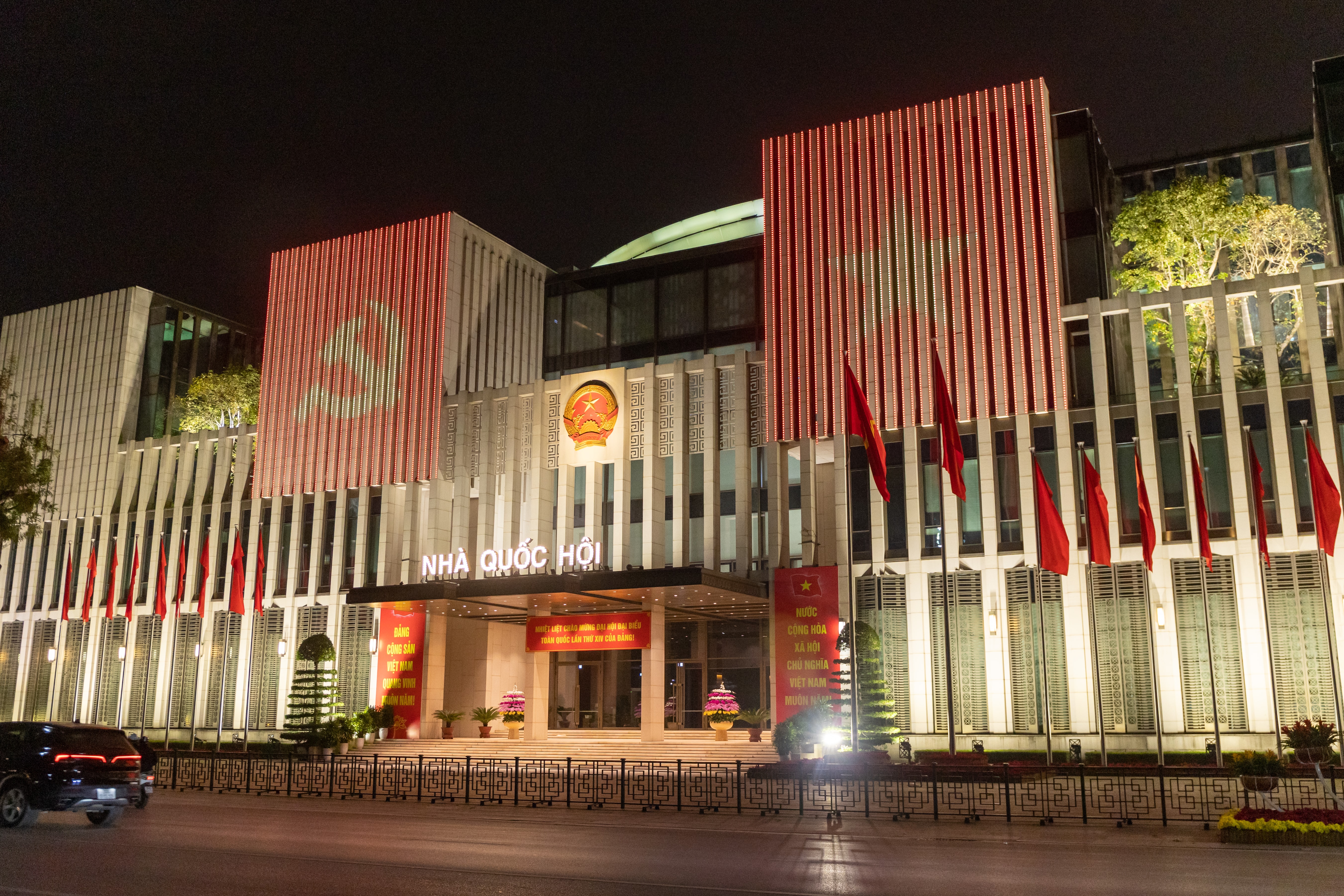 Nhà Quốc hội nổi bật trong không gian chiếu sáng ban đêm